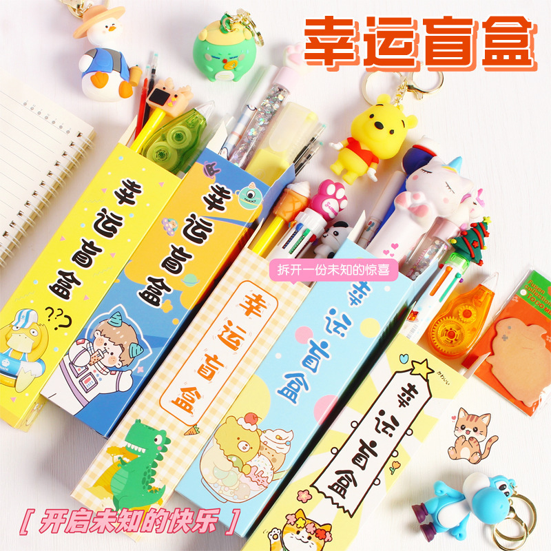 惊喜文具盲盒套装卡通公仔钥匙扣挂件卡通笔文具学习用品学生奖品
