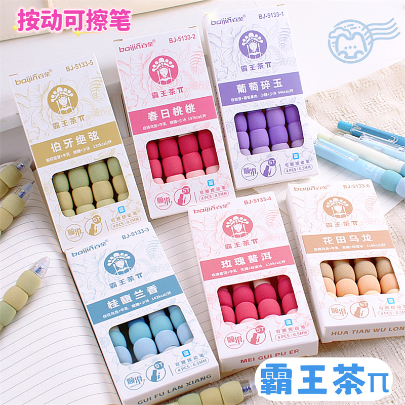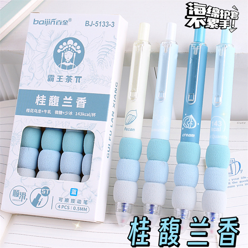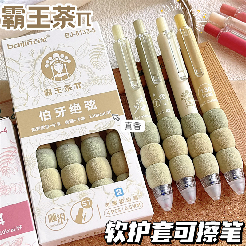 奶茶系列中性笔可擦笔高颜值可爱渐变软握摩易擦0.5小学生晶蓝笔