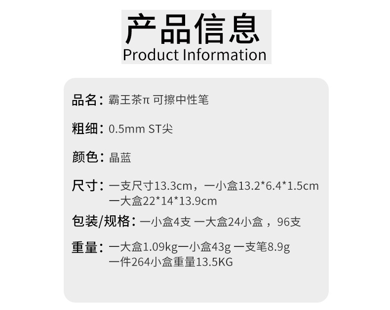 | 0.5mmst erasable crystal blue(0.5mmST可擦款晶蓝) | USD $0.64 | 4412 box available |