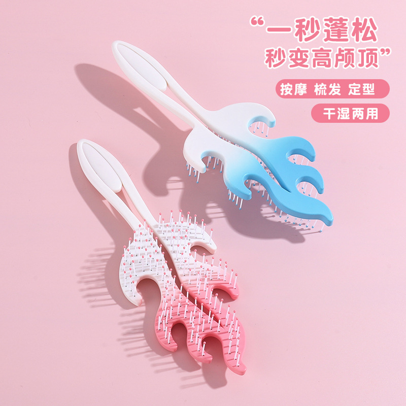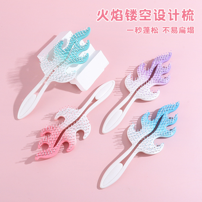 新款火焰镂空梳造型便携梳子蓬松顺发美发梳头皮按摩梳可爱儿童梳