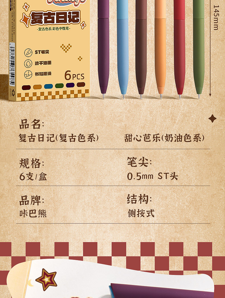 彩色复古中性笔记号笔做笔记手账标记笔学生通用学习用品文具用品