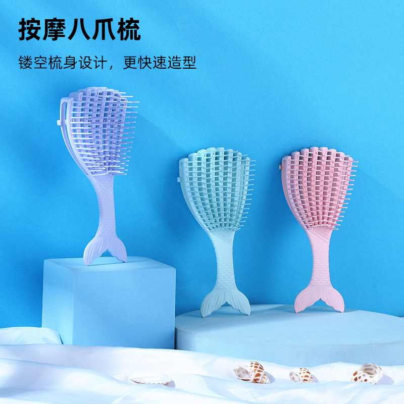 按摩梳批发蓬松镂空女生长发按摩头皮美发排骨梳扇贝按摩造型梳子