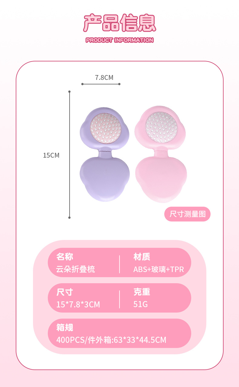 便携式迷你翻盖梳子少女小巧便携化妆镜气囊梳折叠二合一镜梳一体
