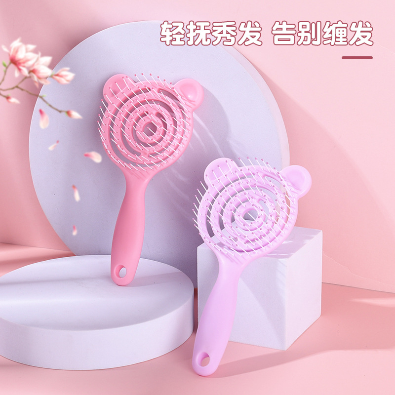 梳子卡通镂空梳头皮按摩梳可爱小熊蚊香梳美发造型梳顺发排骨梳