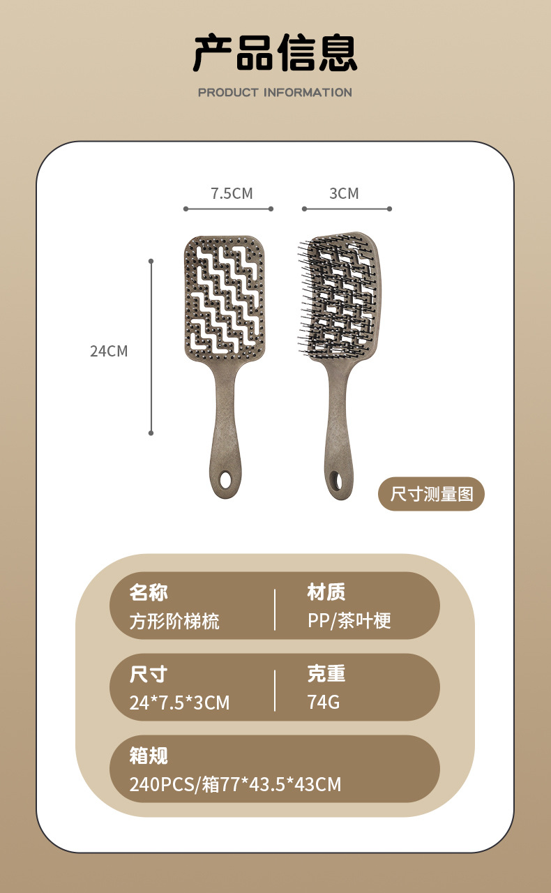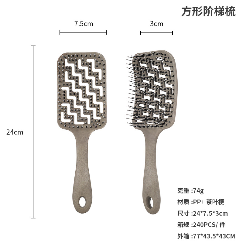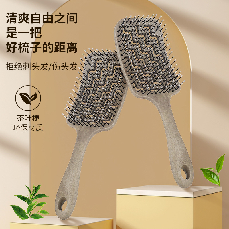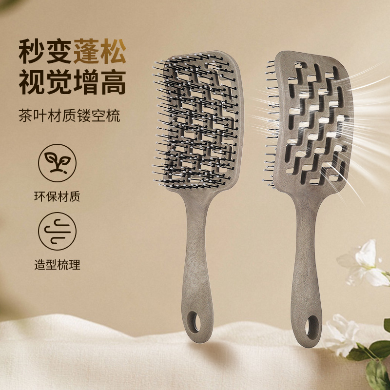 新款环保大弯梳可降解茶叶梗镂空梳子湿两用便携排骨梳头皮按摩梳