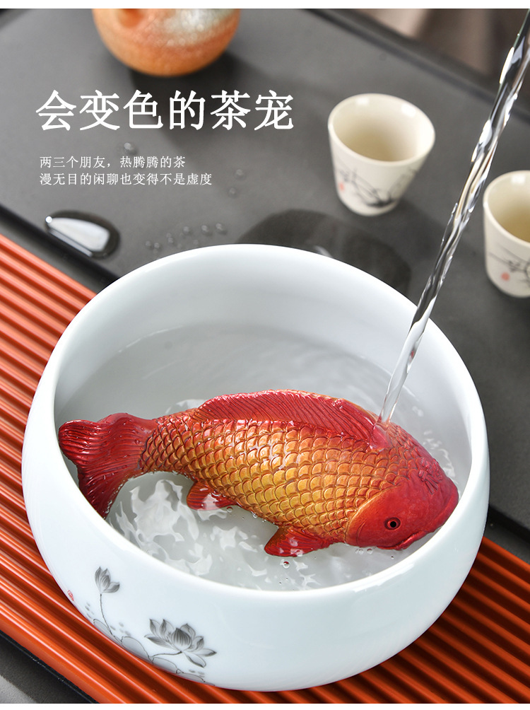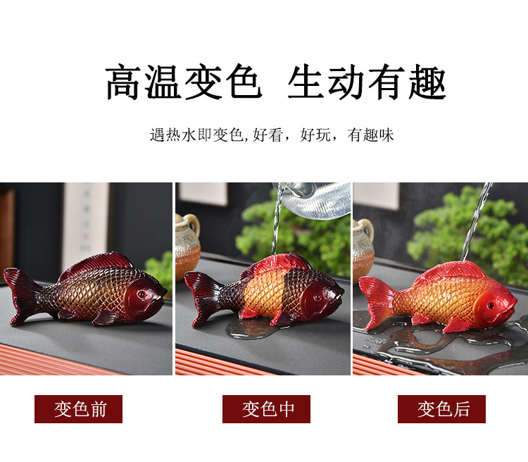 茶台摆件新款国潮网红变色鱼茶宠摆件可养茶玩茶