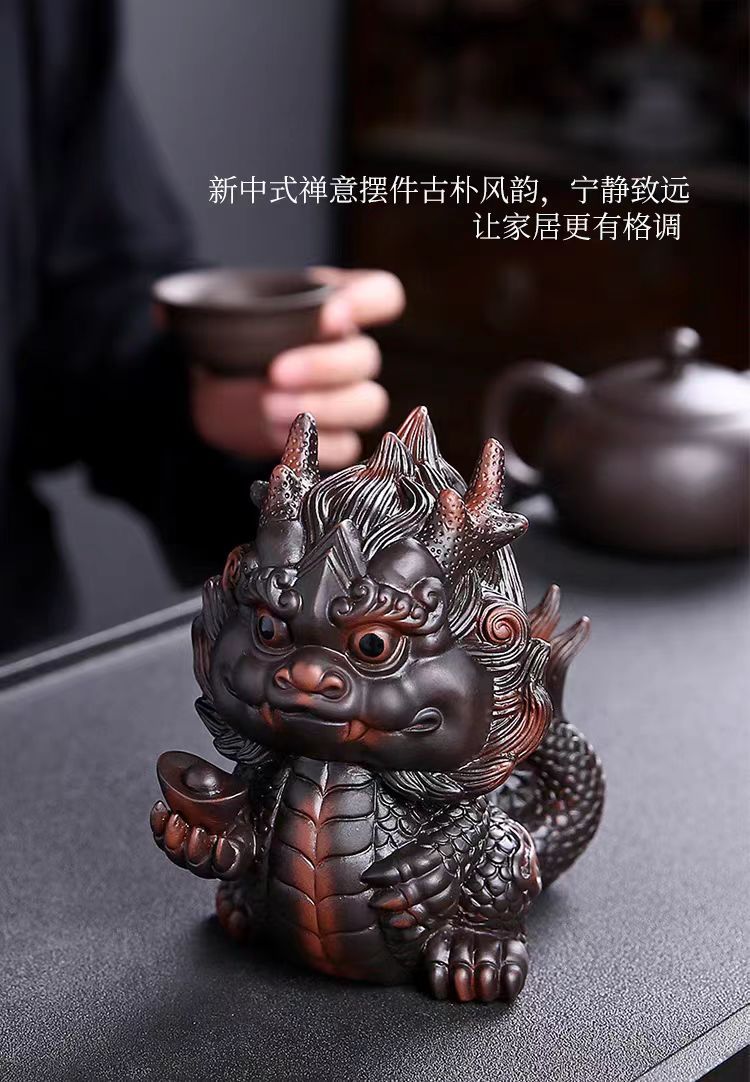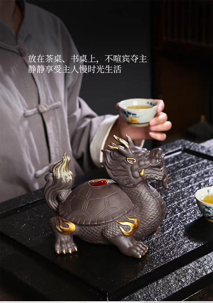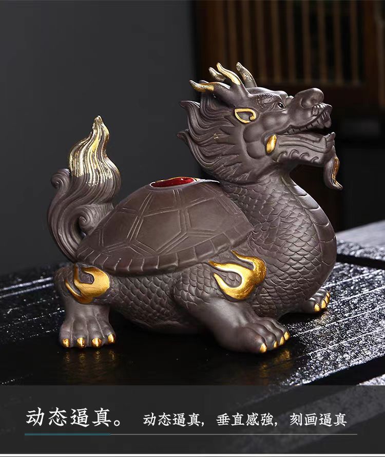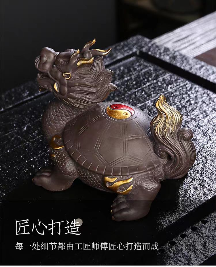 紫砂大号龙龟茶宠茶玩精品紫陶貔貅神兽摆件家居办公室装饰工艺品
