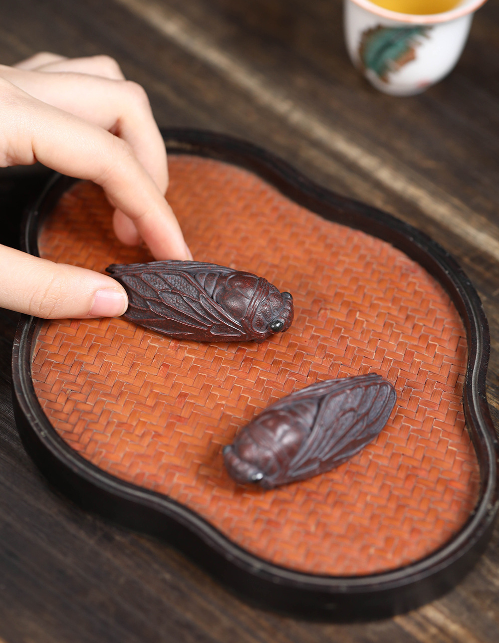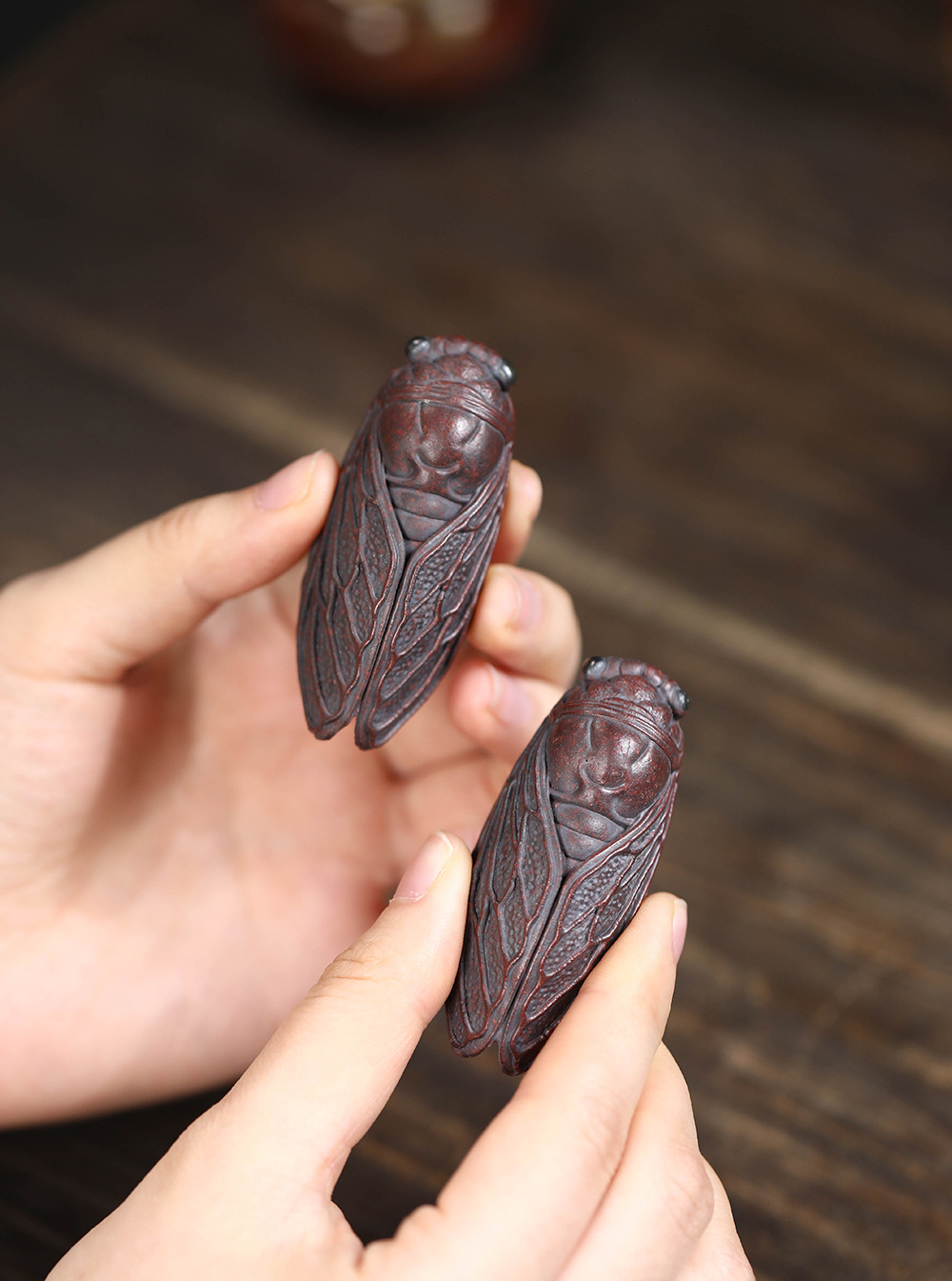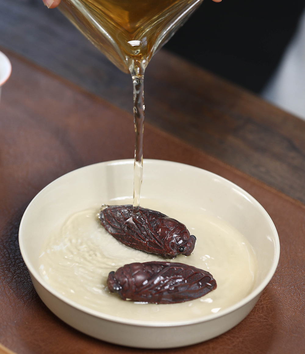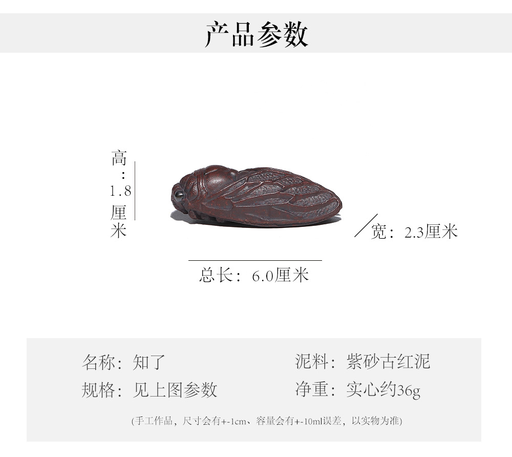 宜兴紫砂茶宠知了原矿泥料创意茶玩手把件金蝉茶道小摆件一鸣惊人