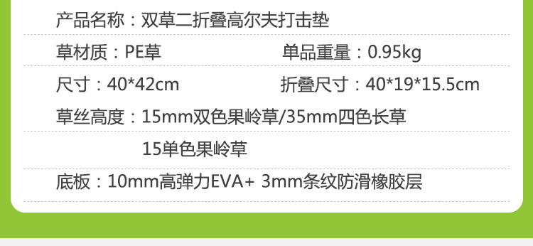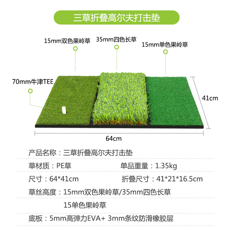 双/三合一高尔夫打击垫 个人室内外便携练习垫 可折叠高尔夫球垫