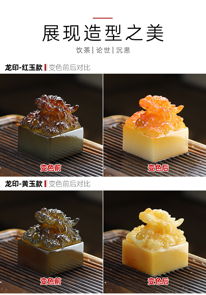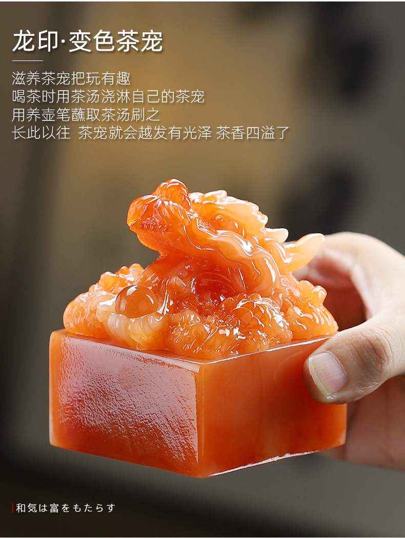 变色茶宠摆件中式龙印茶台茶盘摆件茶丛宠茶玩功夫茶具茶艺装饰品