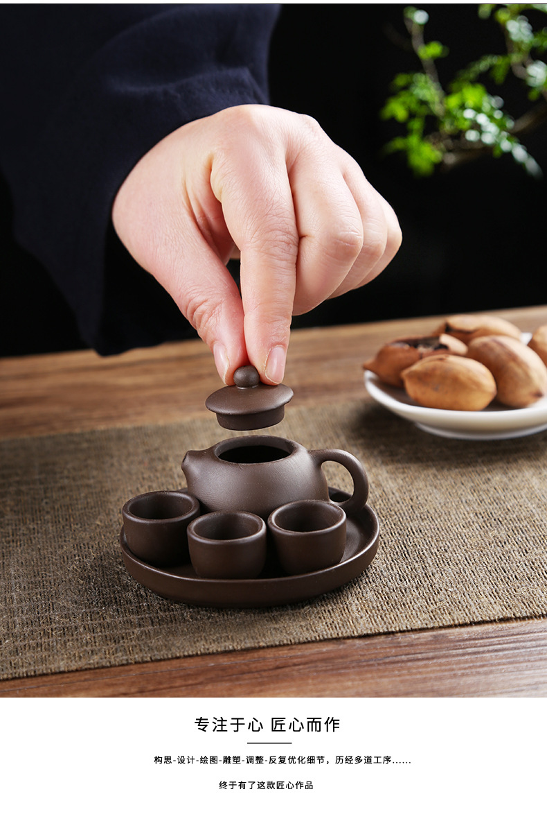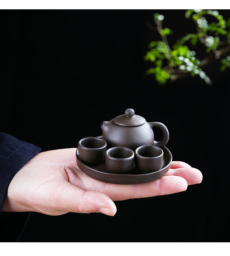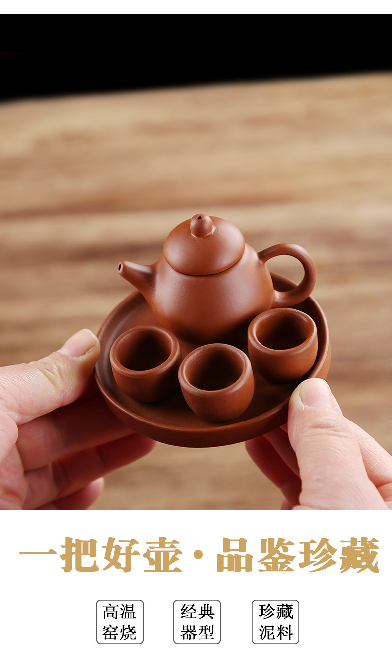 迷你紫砂小茶壶指尖把把壶茶宠功夫茶具茶盘茶杯套装冒烟奶茶摆件