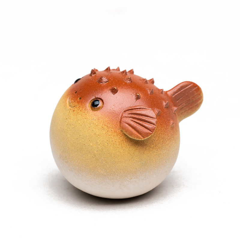 宜兴紫砂茶宠河豚摆件可养茶玩茶台家居茶道周边河豚家族厂家批发