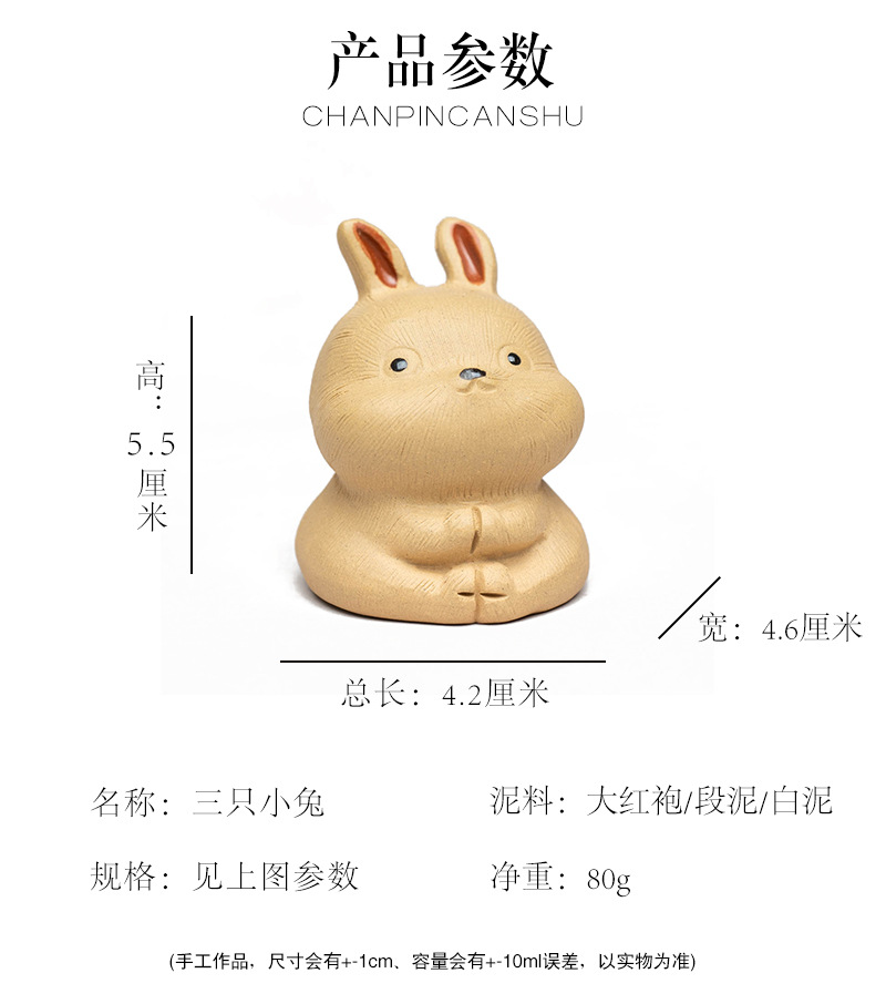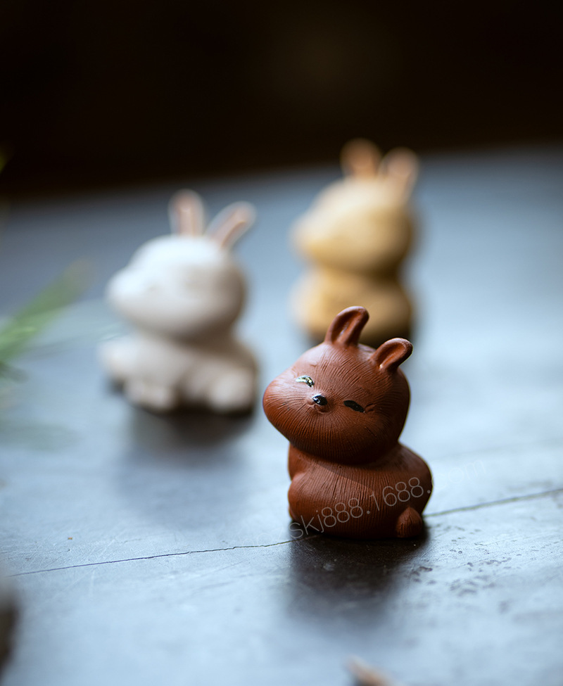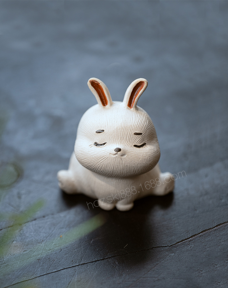 宜兴紫砂茶宠生肖兔子茶宠可养茶盘茶桌摆件茶具创意茶玩小白兔子