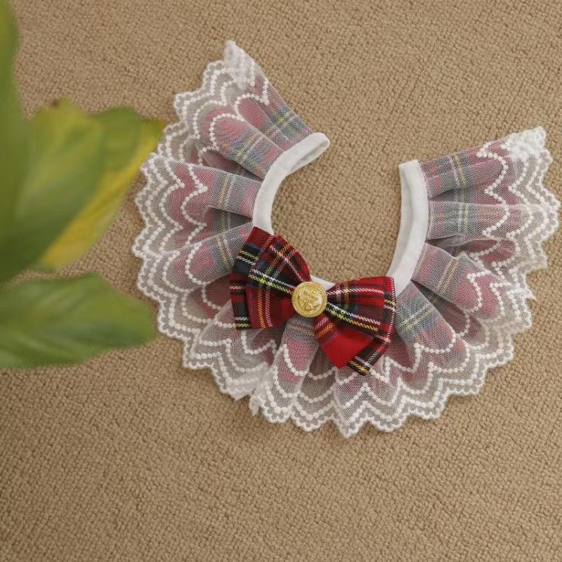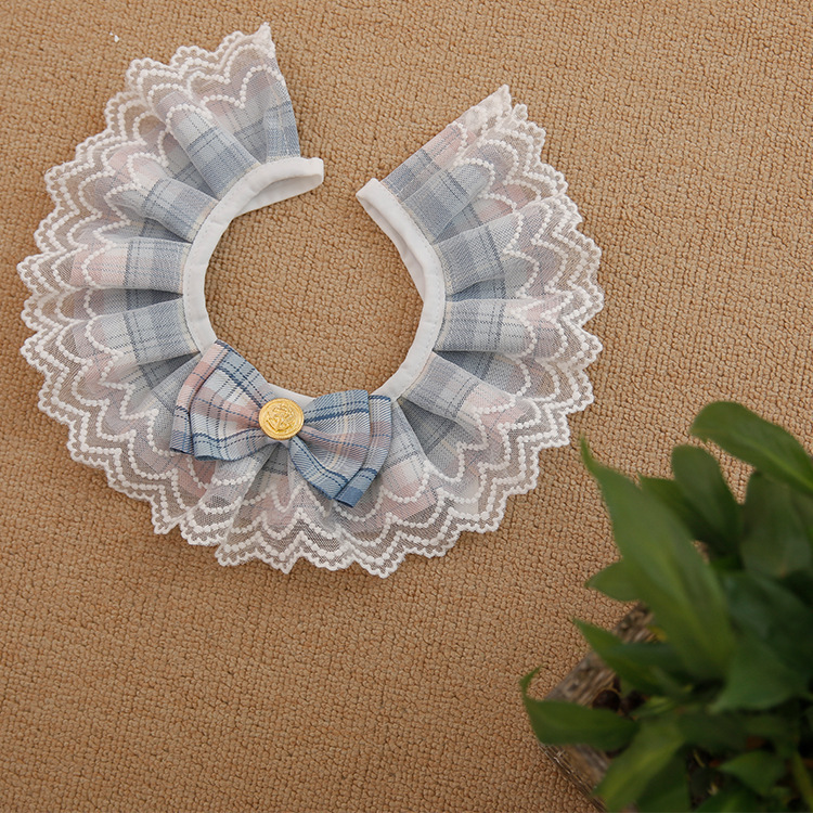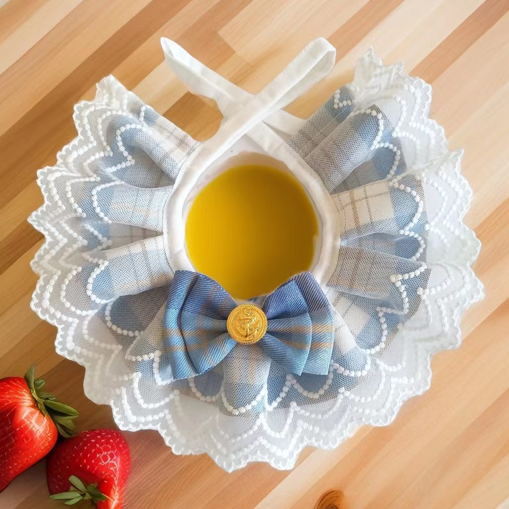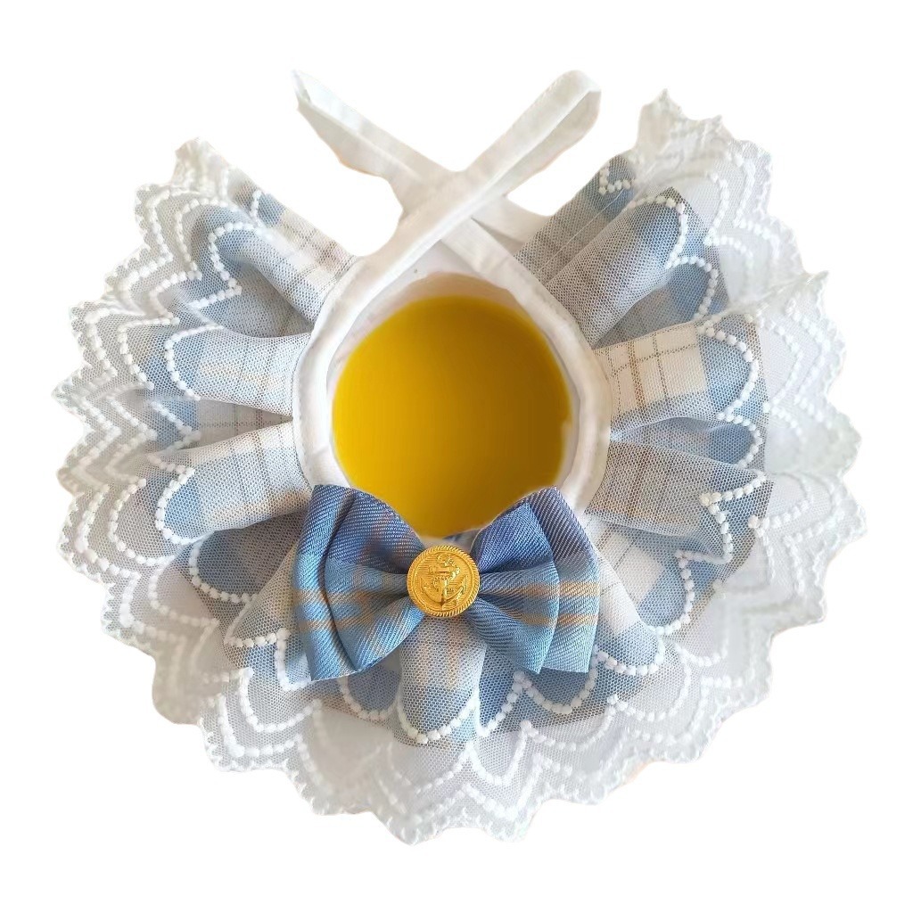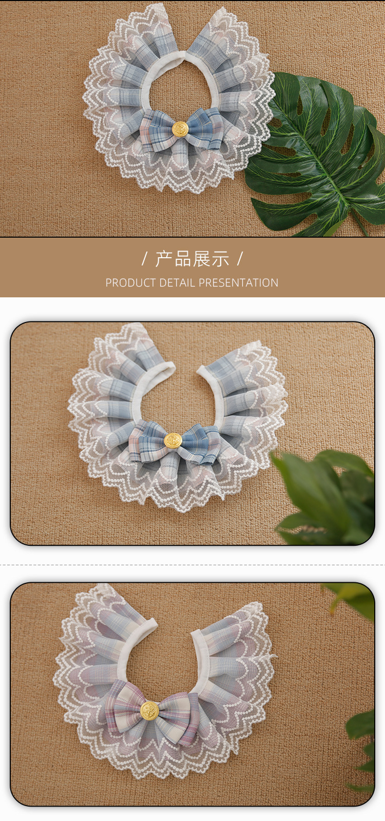 宠物口水巾猫咪蕾丝蝴蝶结项圈JK学院风可爱围脖狗狗宠物围兜批发