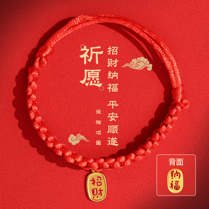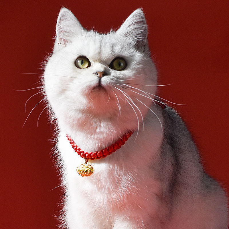宠物长命锁手工编织春节款猫咪红绳项圈新年猫围脖装饰项链可调节