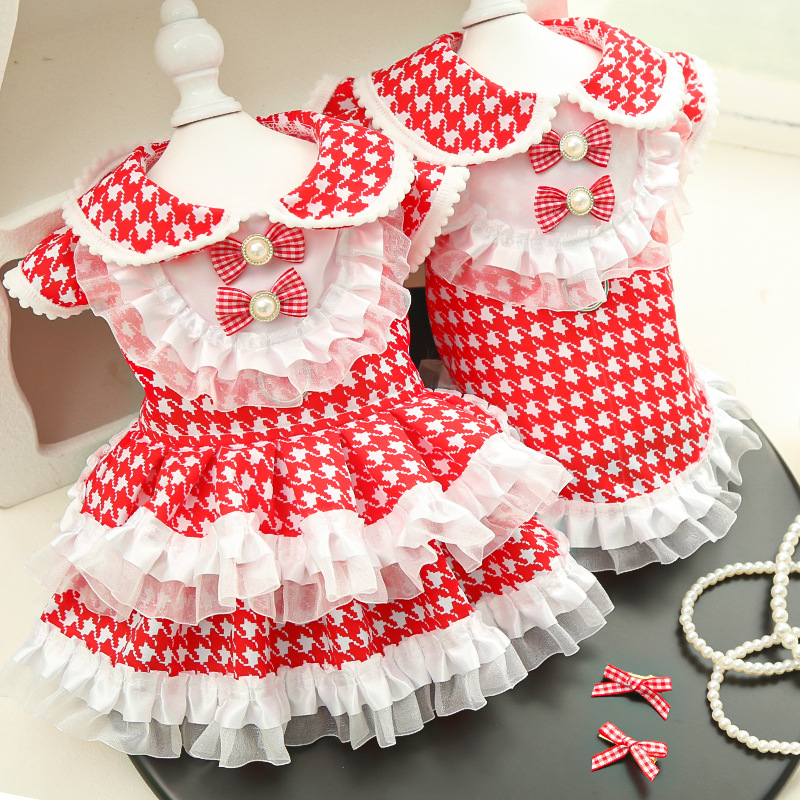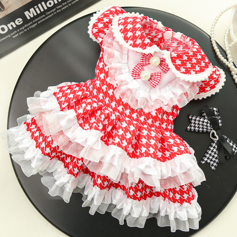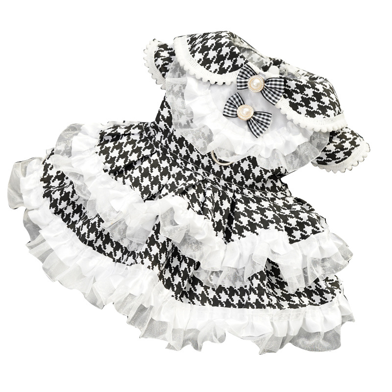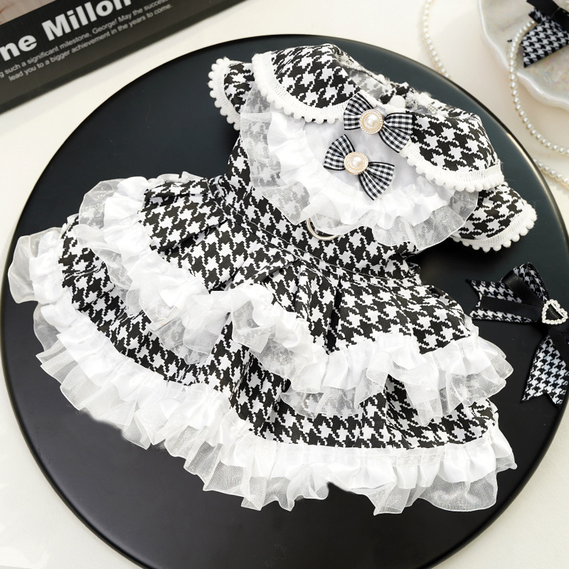 名媛风狗狗千鸟格可牵引金毛猫咪裙子泰迪猫宠物用品狗衣服服装