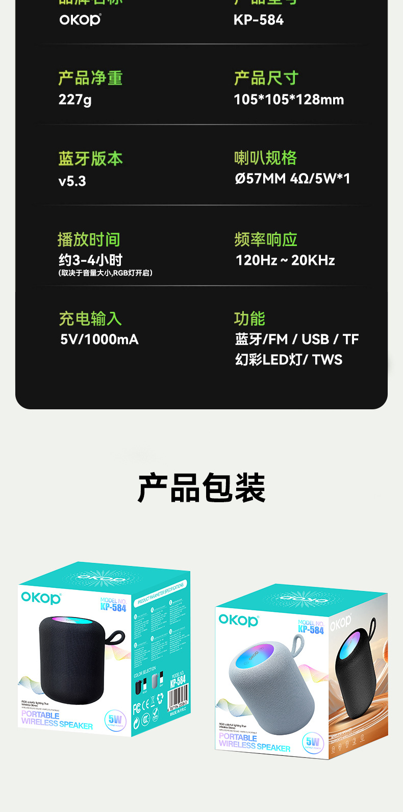 584蓝牙音响2025跨境爆款小型无线七彩氛围灯户外便携式迷你音箱