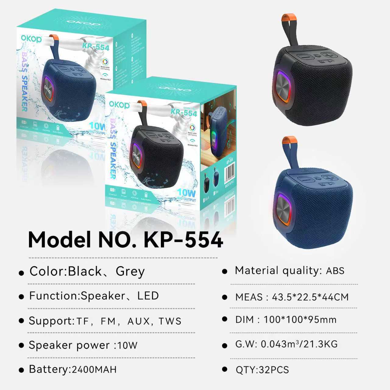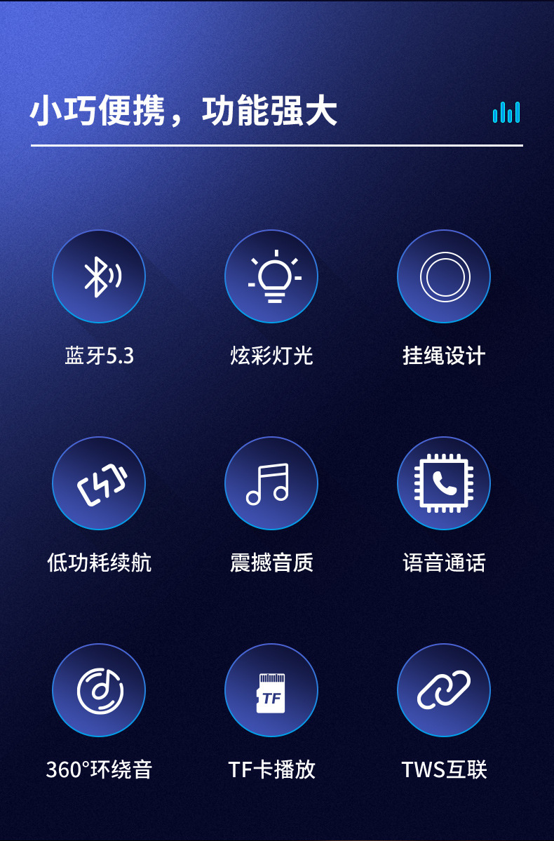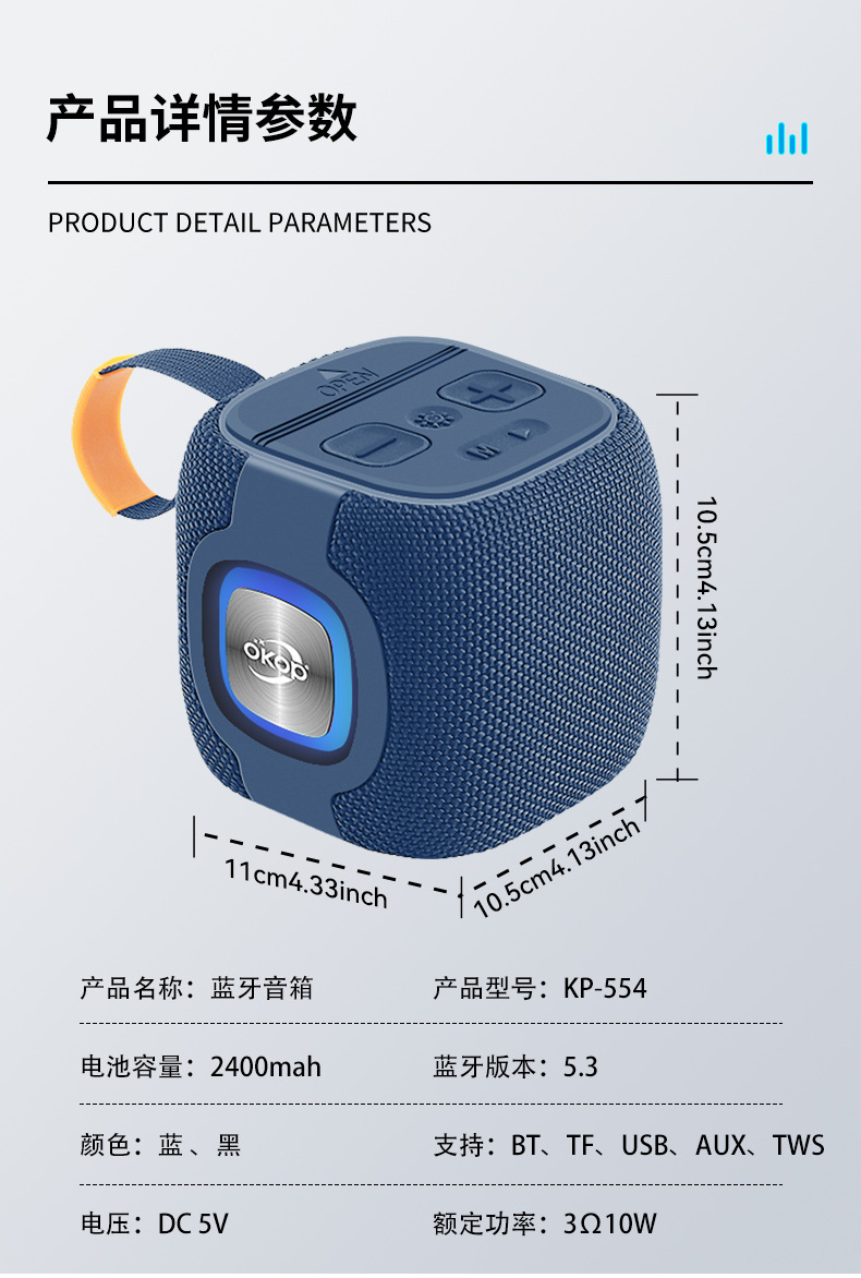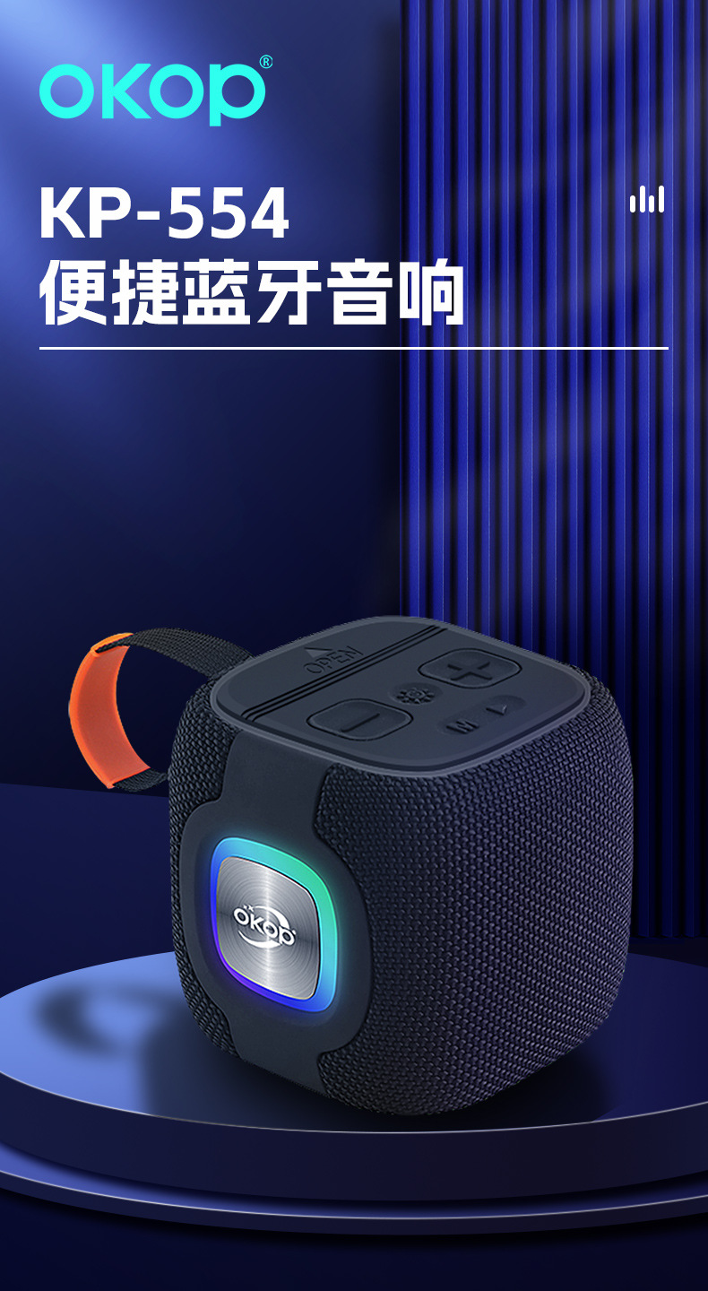 554蓝牙音响大电池高音质方形挂绳户外防水便携RGB氛围灯迷你音箱