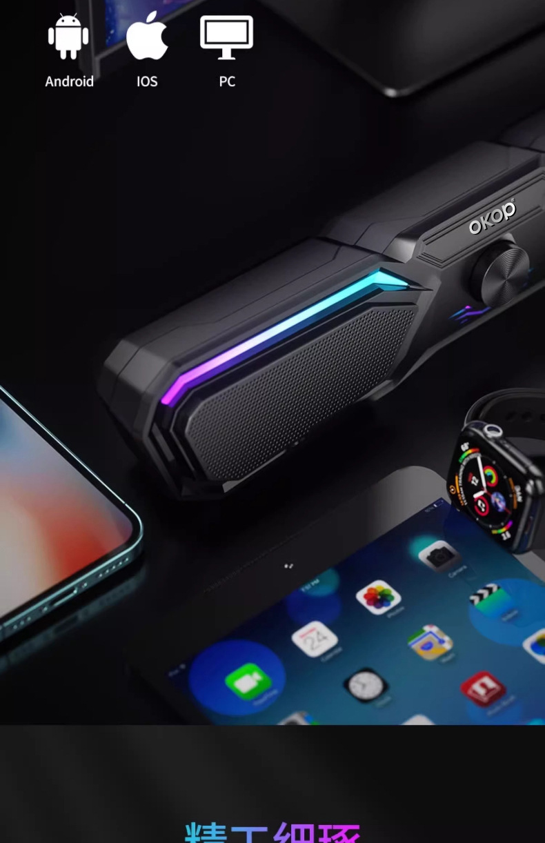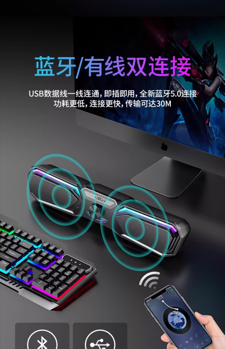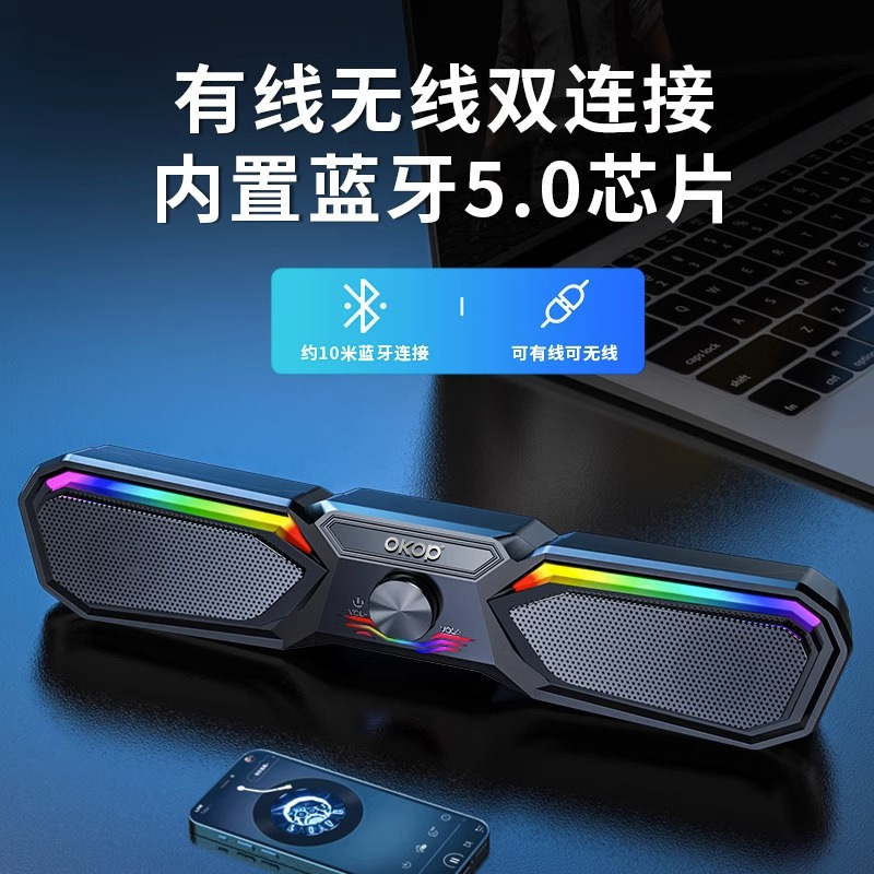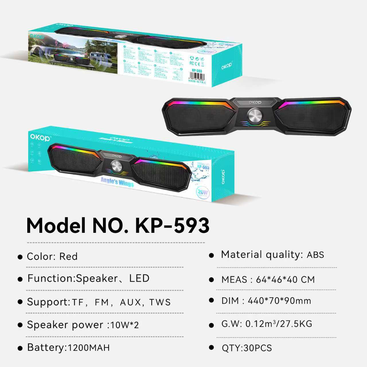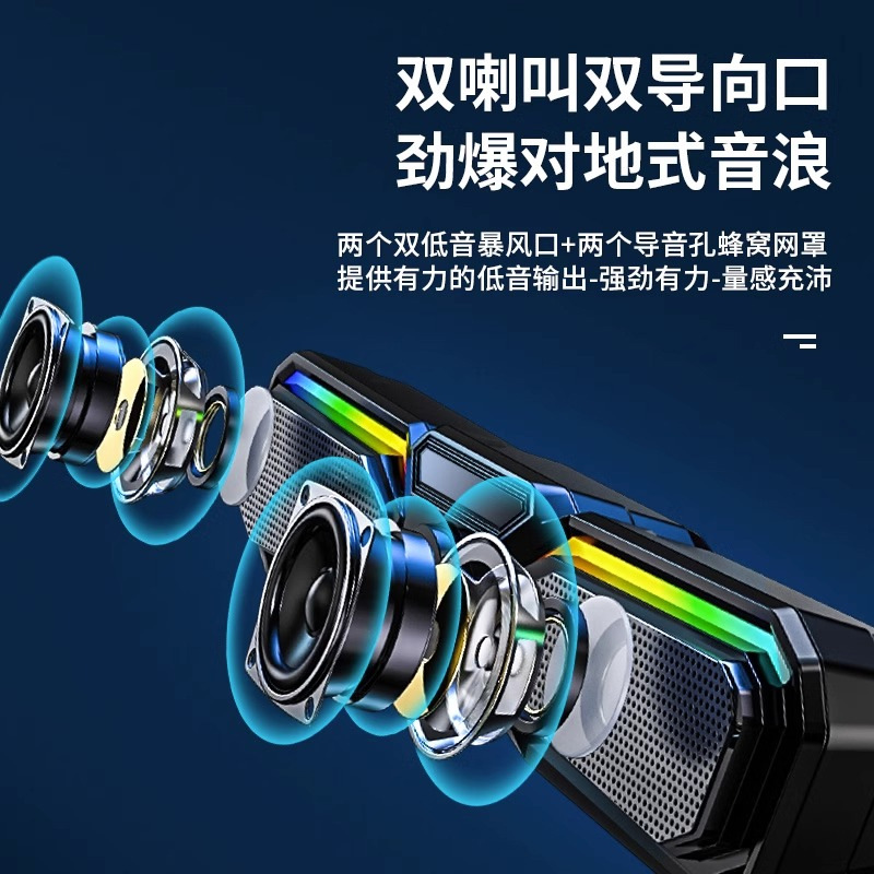 593蓝牙音响跨境新款长条家用户外便携重低音双喇叭插卡迷你音箱