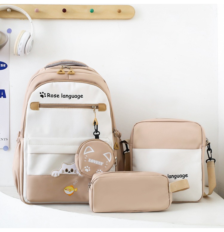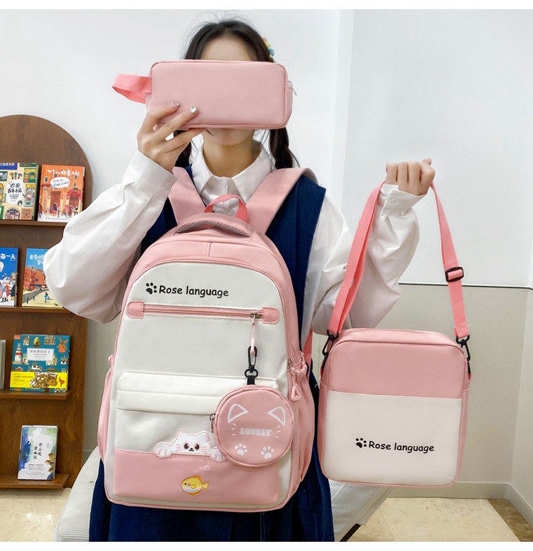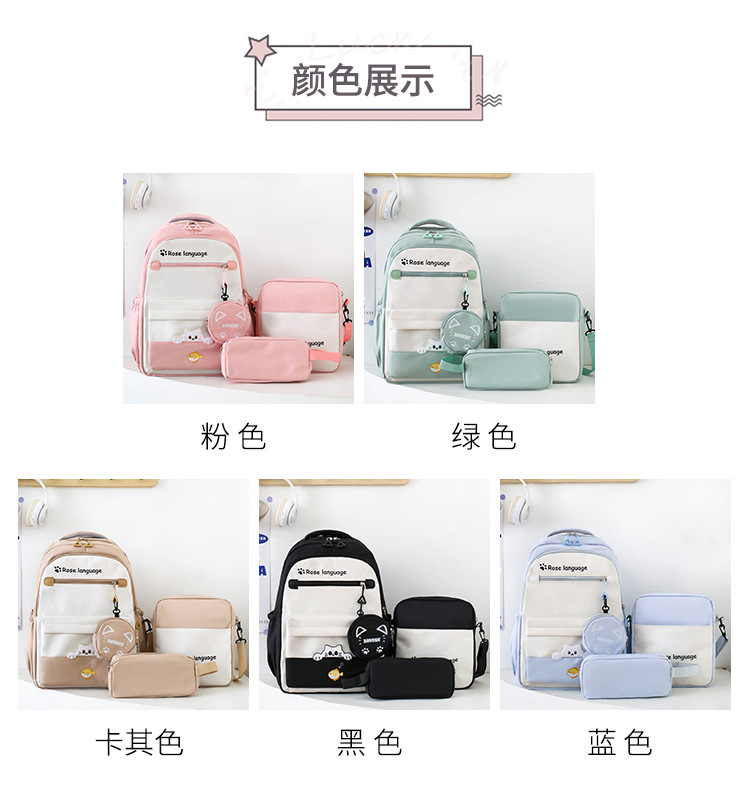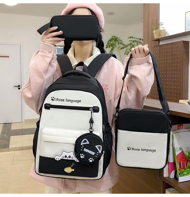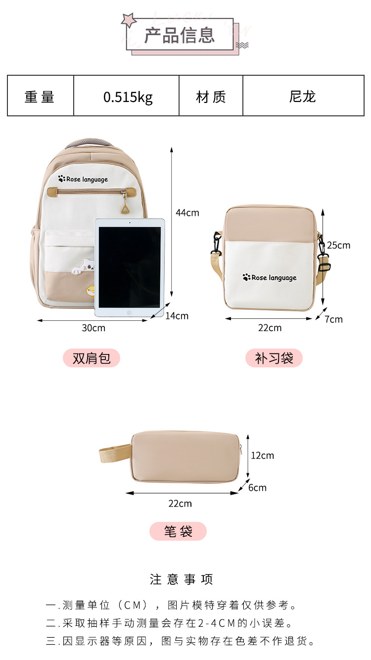 新款学生书包学院风大容量书包女韩版简约中小学生三件套双肩包