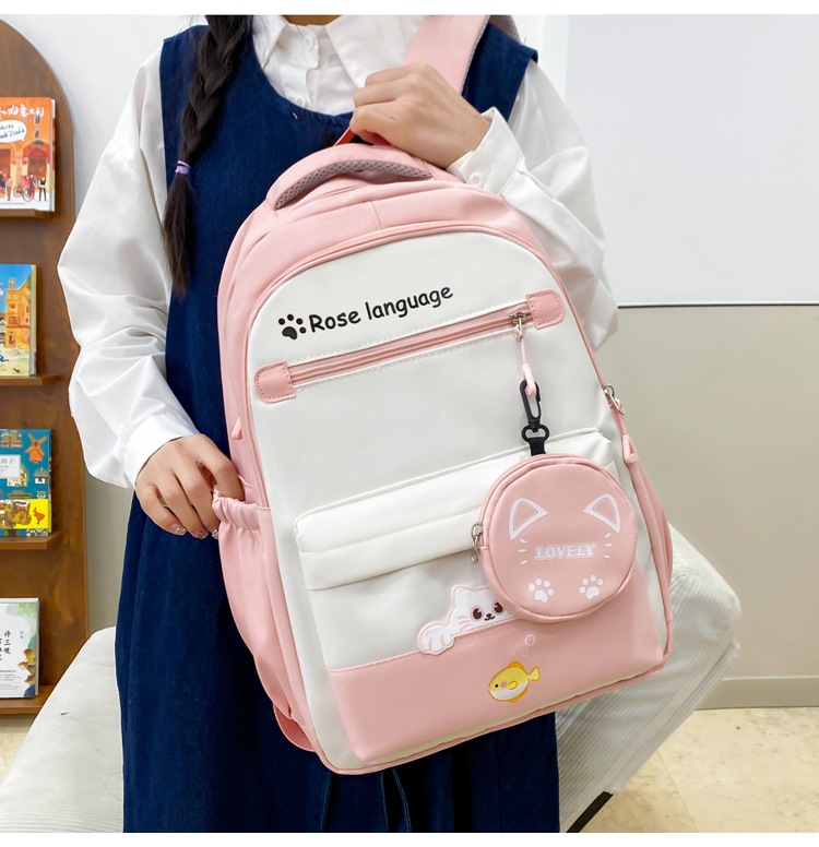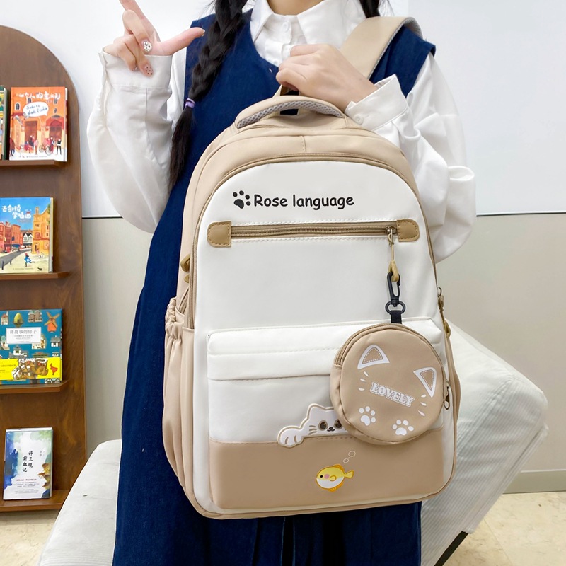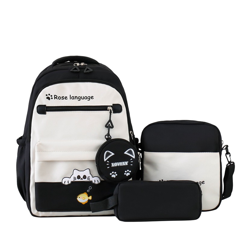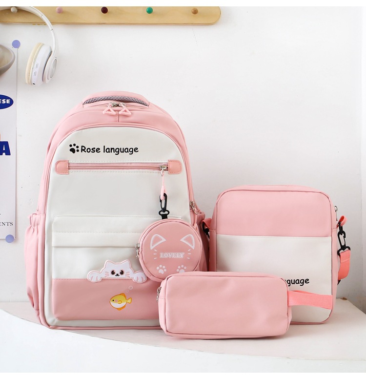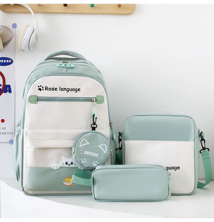 新款学生书包学院风大容量书包女韩版简约中小学生三件套双肩包