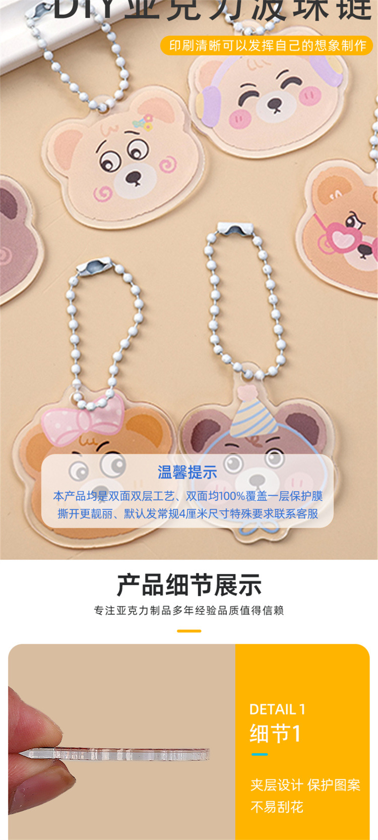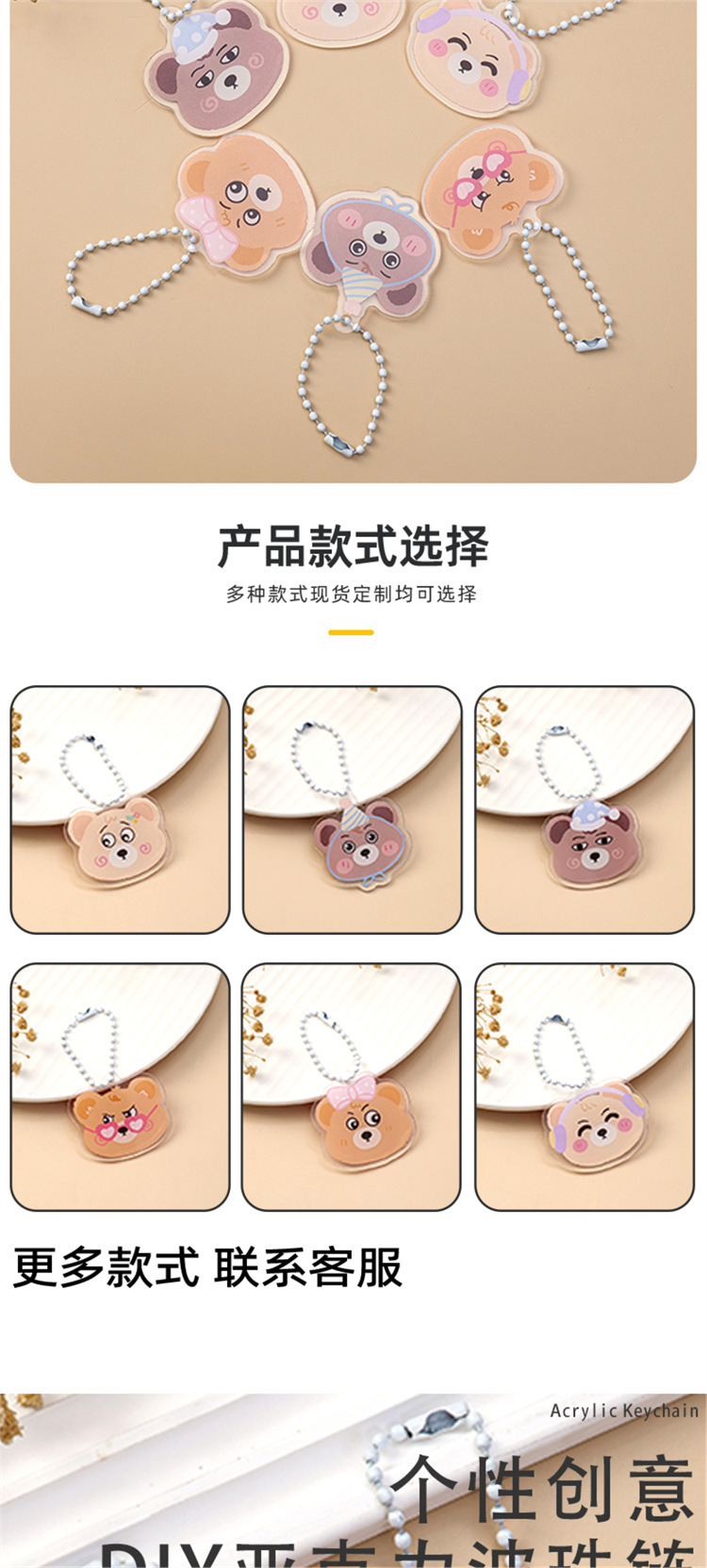 卡通可爱小挂件小熊头像亚克力钥匙扣学生书包挂件装饰挂饰小礼物