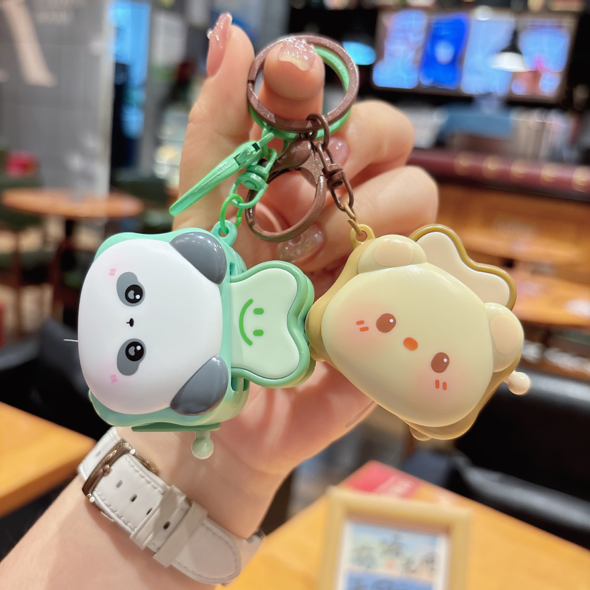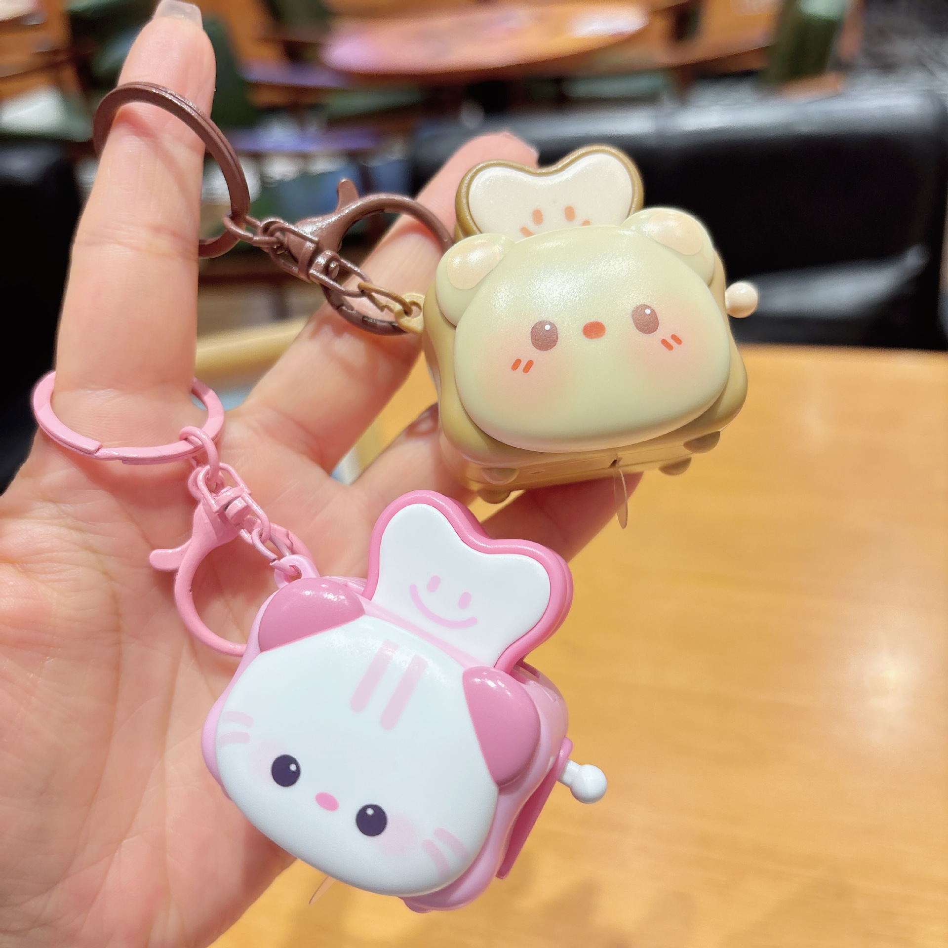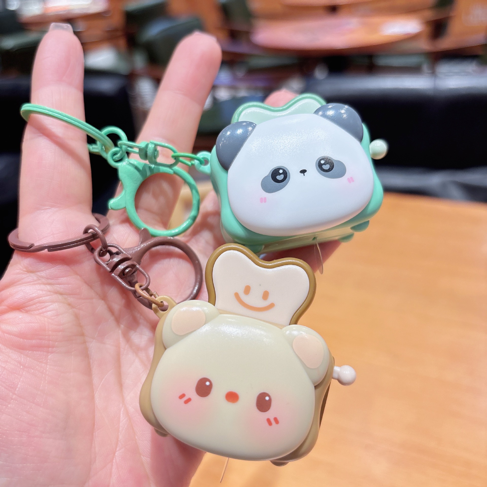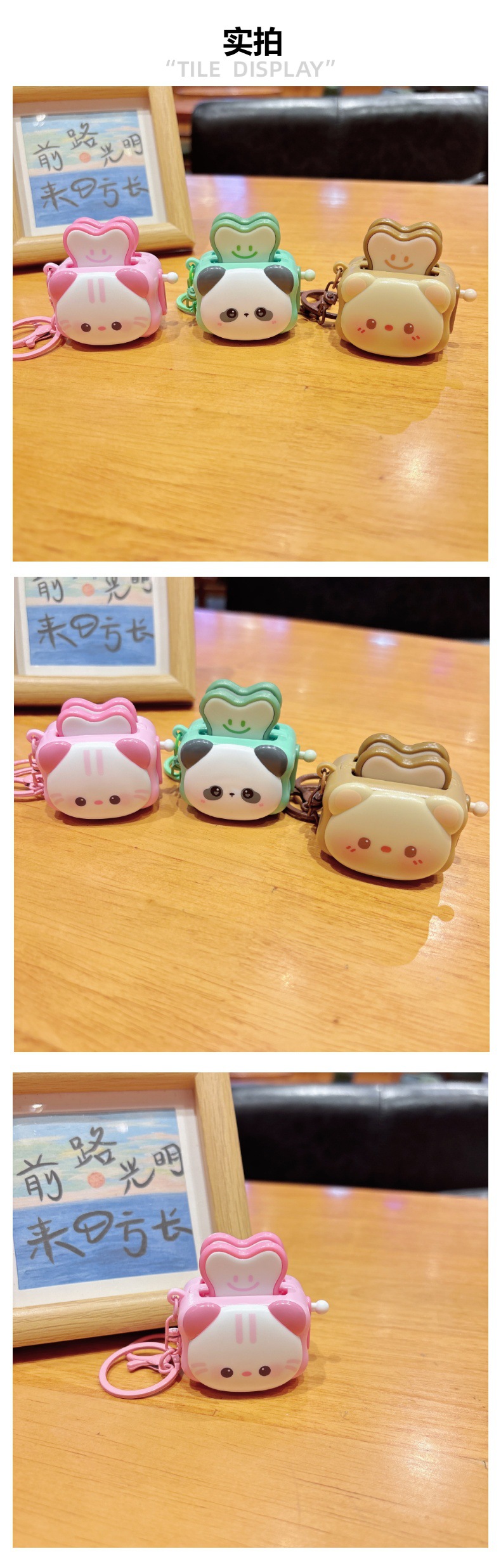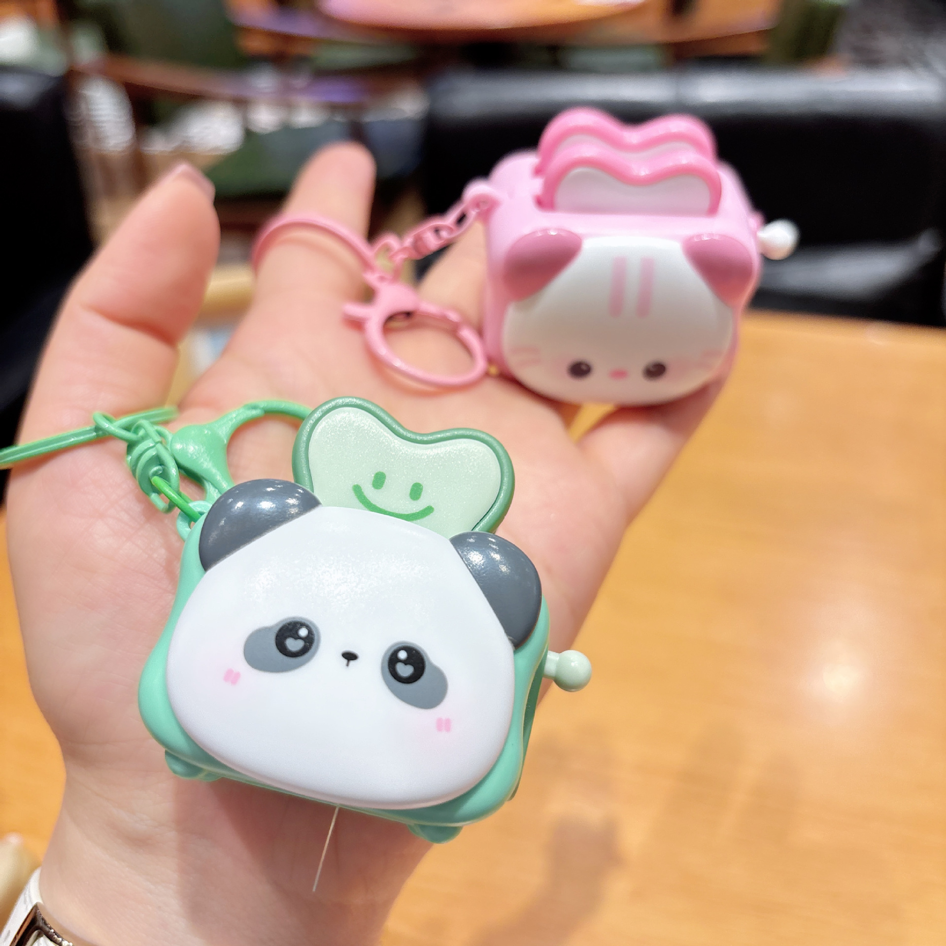 创意趣味小动物面包机钥匙扣可爱卡通熊猫玩具解压学生书包小挂件
