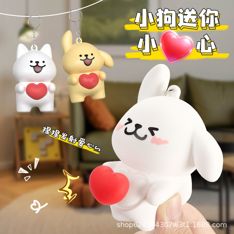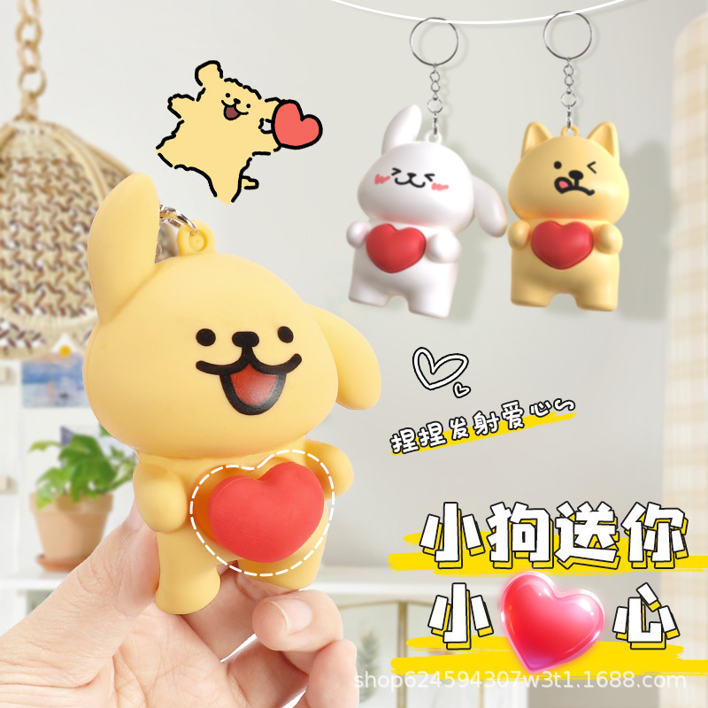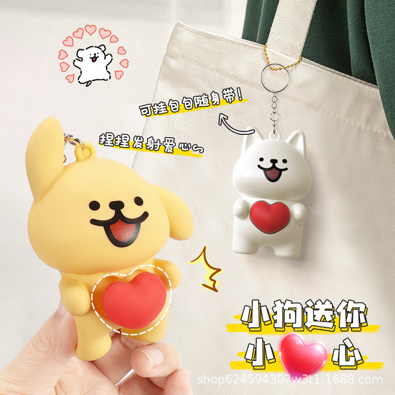 线条可爱小狗钥匙扣公仔书包挂件解压卡通比心小狗网红情人节礼物