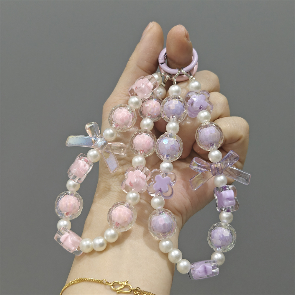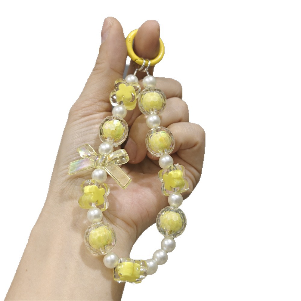 新款蝴蝶结串珠手机链幸运四叶草钥匙扣挂件可爱背包装饰挂链批发