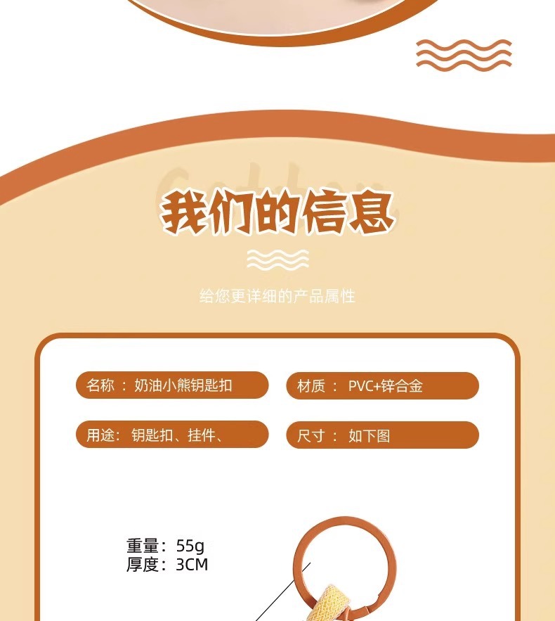 公仔钥匙扣黄油奶油小熊情侣女可爱书包挂件车钥匙链挂饰品钥匙扣