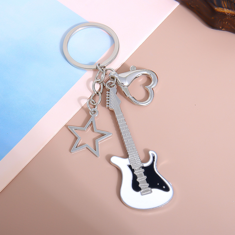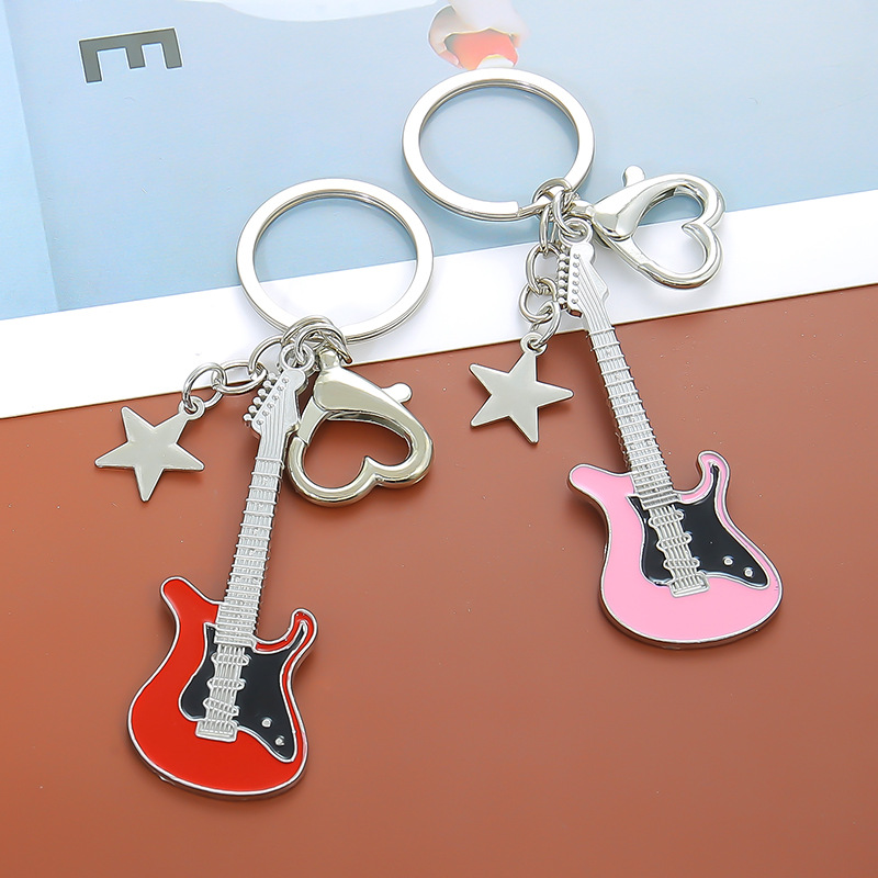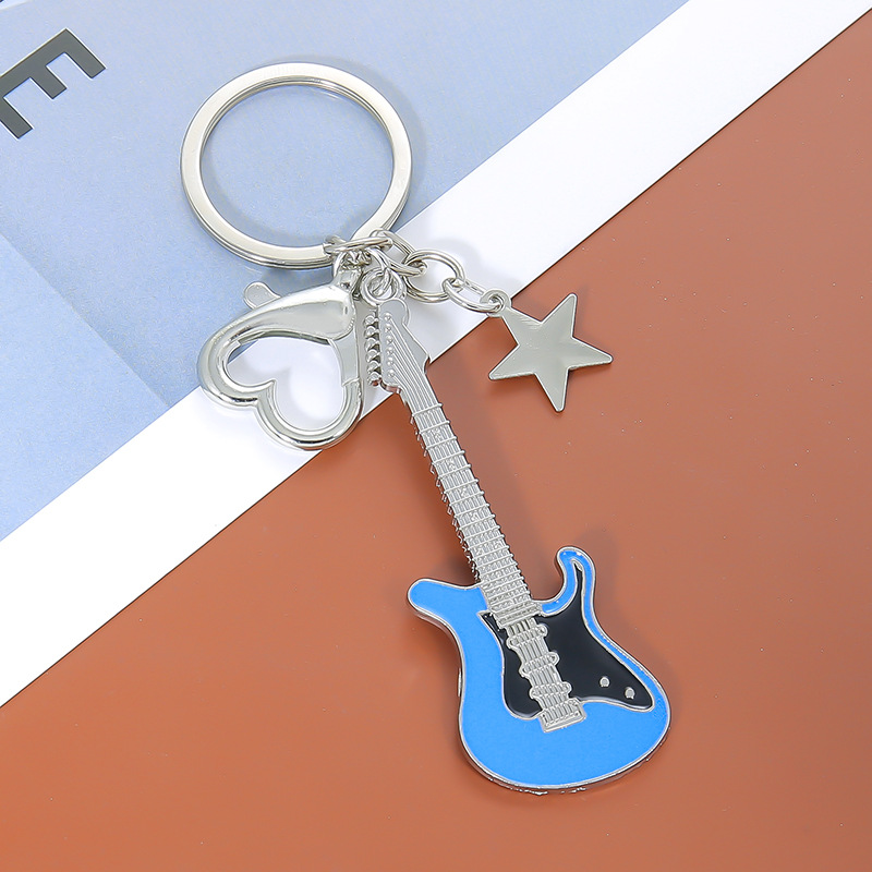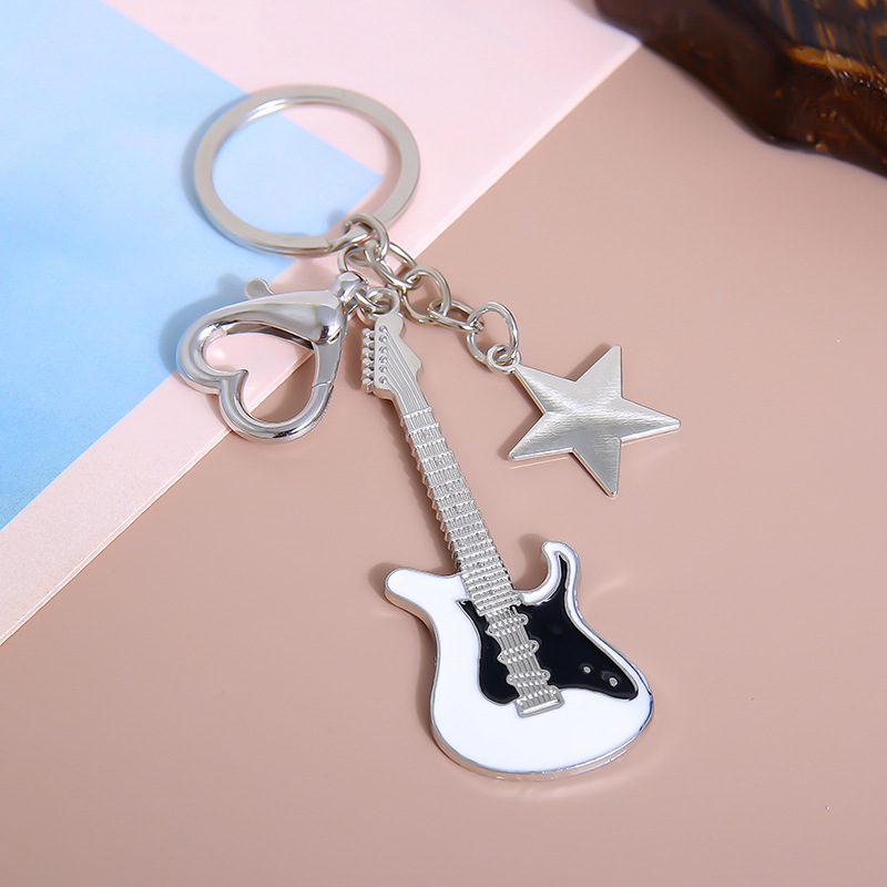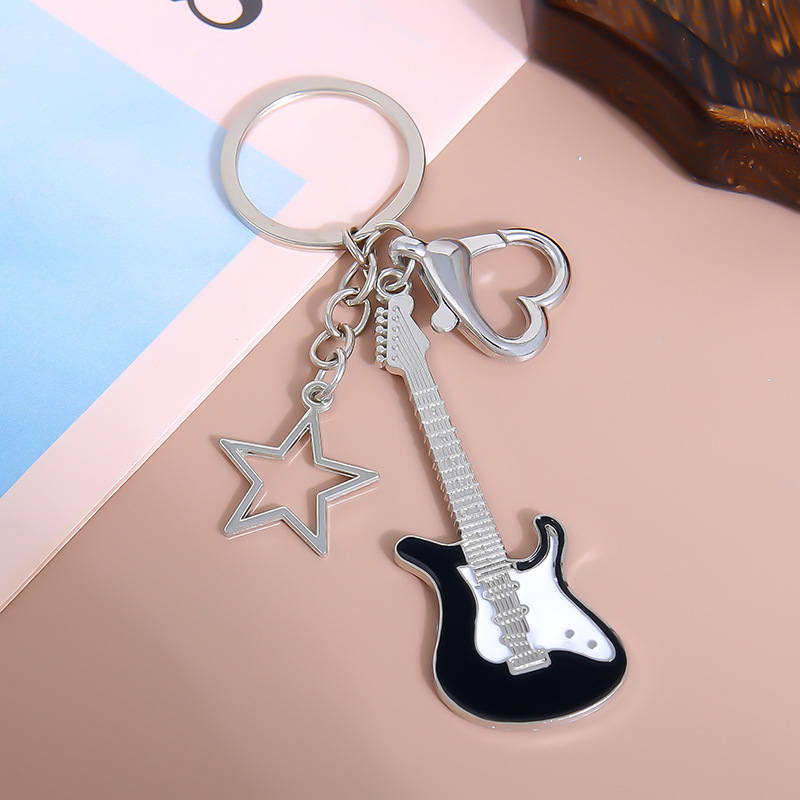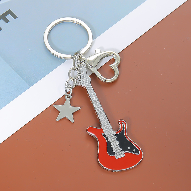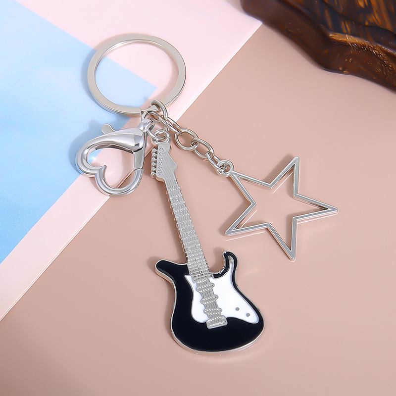 跨境创意音乐吉他钥匙扣背包金属乐器电子吉它五角星钥匙挂件挂饰