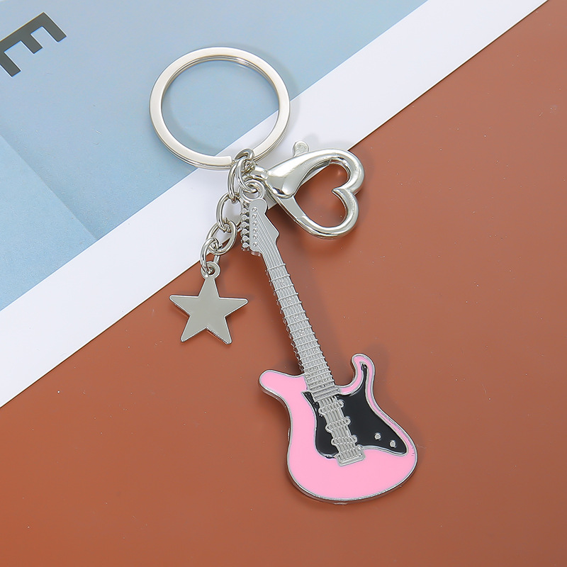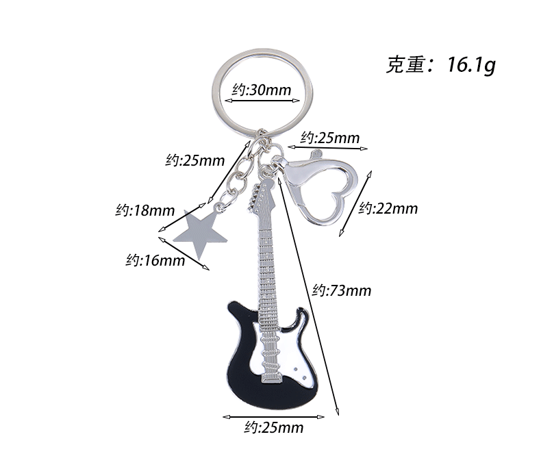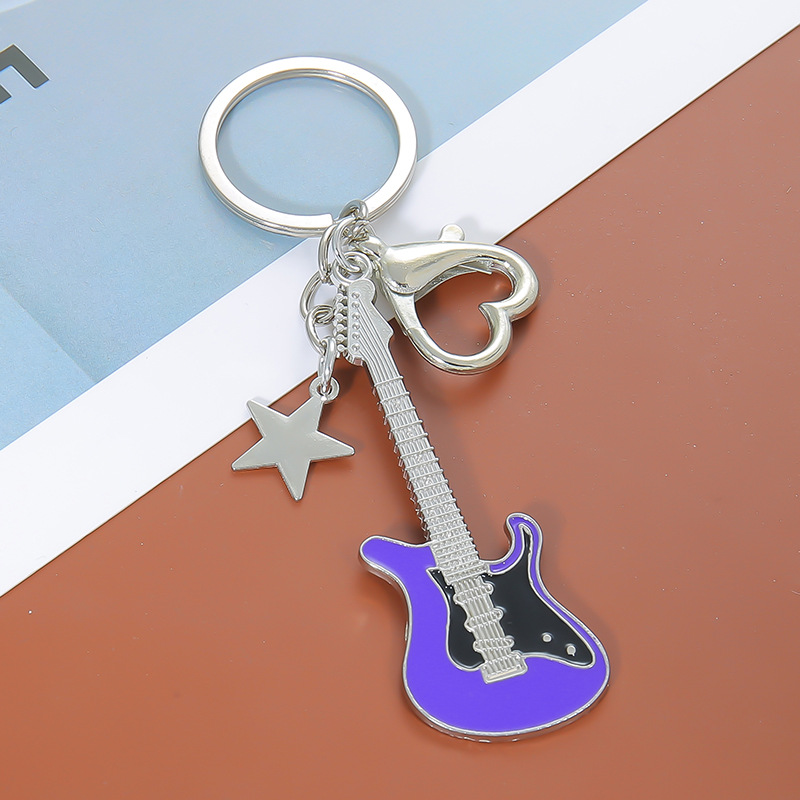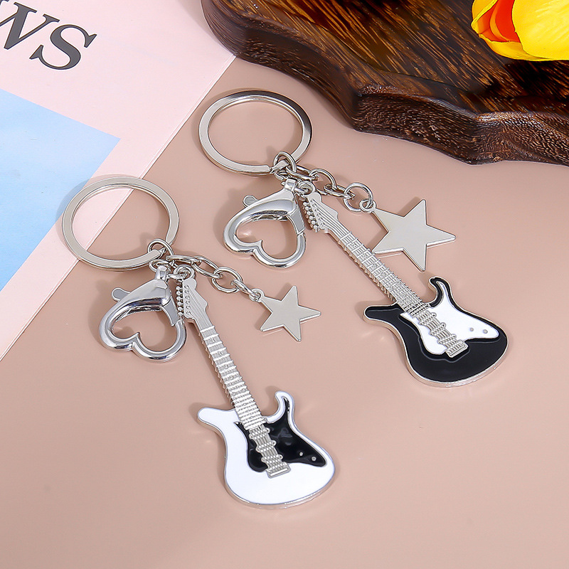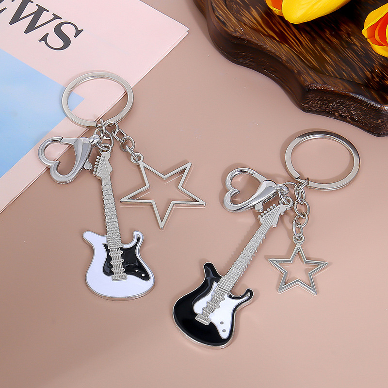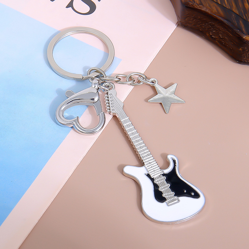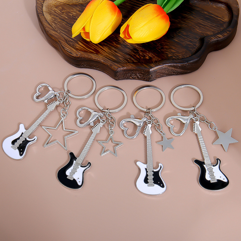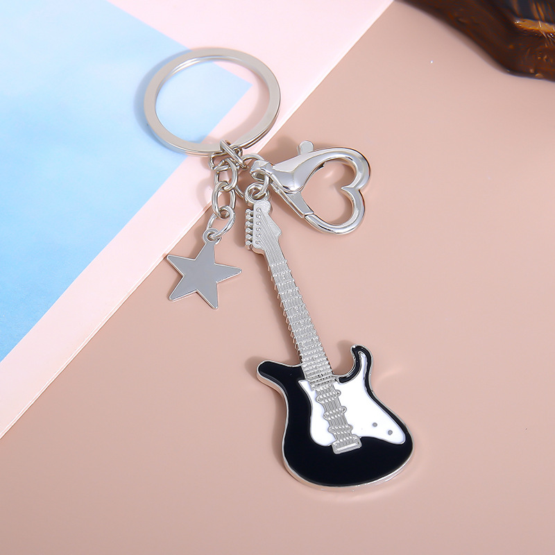跨境创意音乐吉他钥匙扣背包金属乐器电子吉它五角星钥匙挂件挂饰
