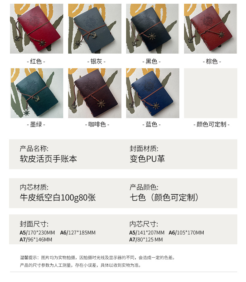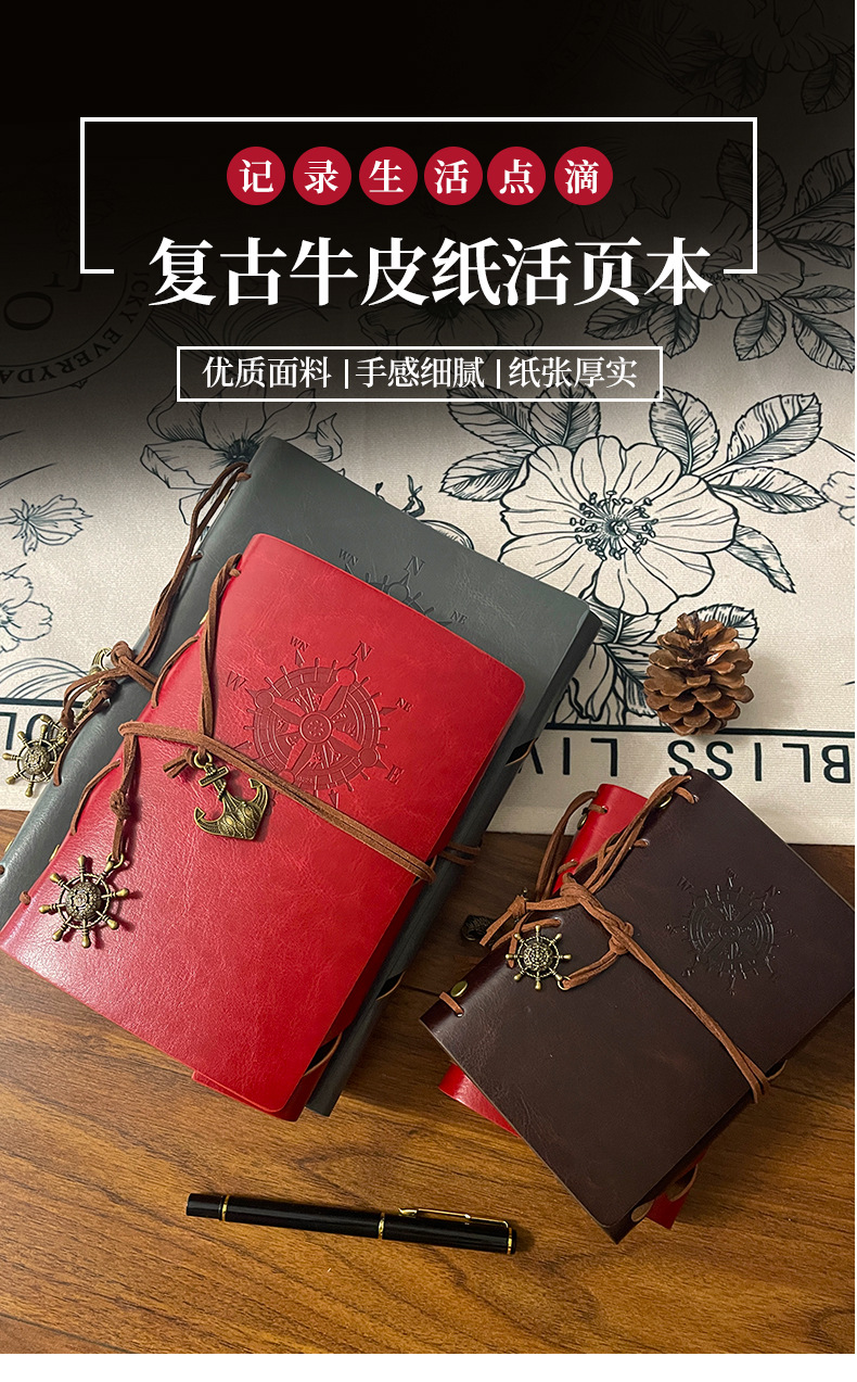 复古笔记本活页手账本便携精致手帐本小众创意日记本跨境文艺本子