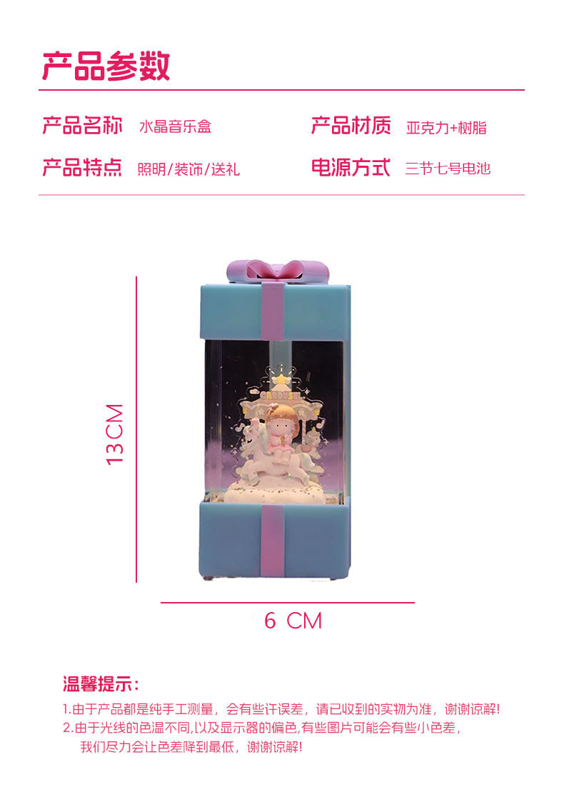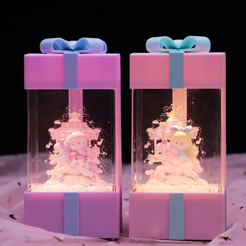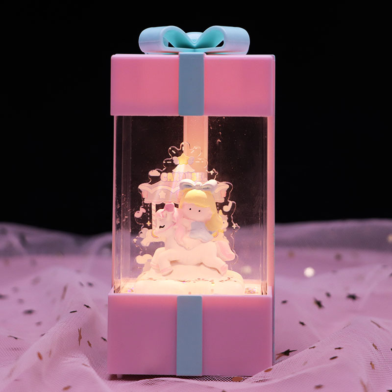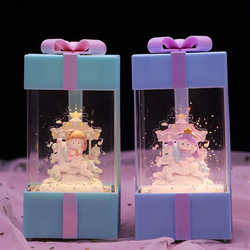 旋转木马女孩水晶灯音乐盒发光儿童女生日礼物精品店学生文具批发