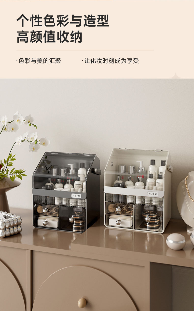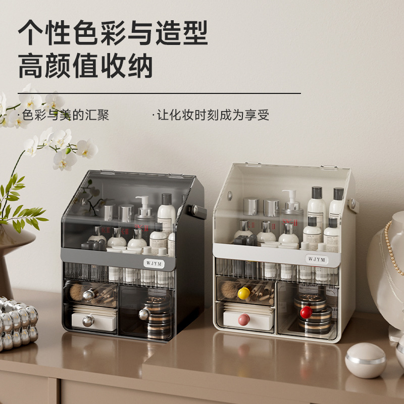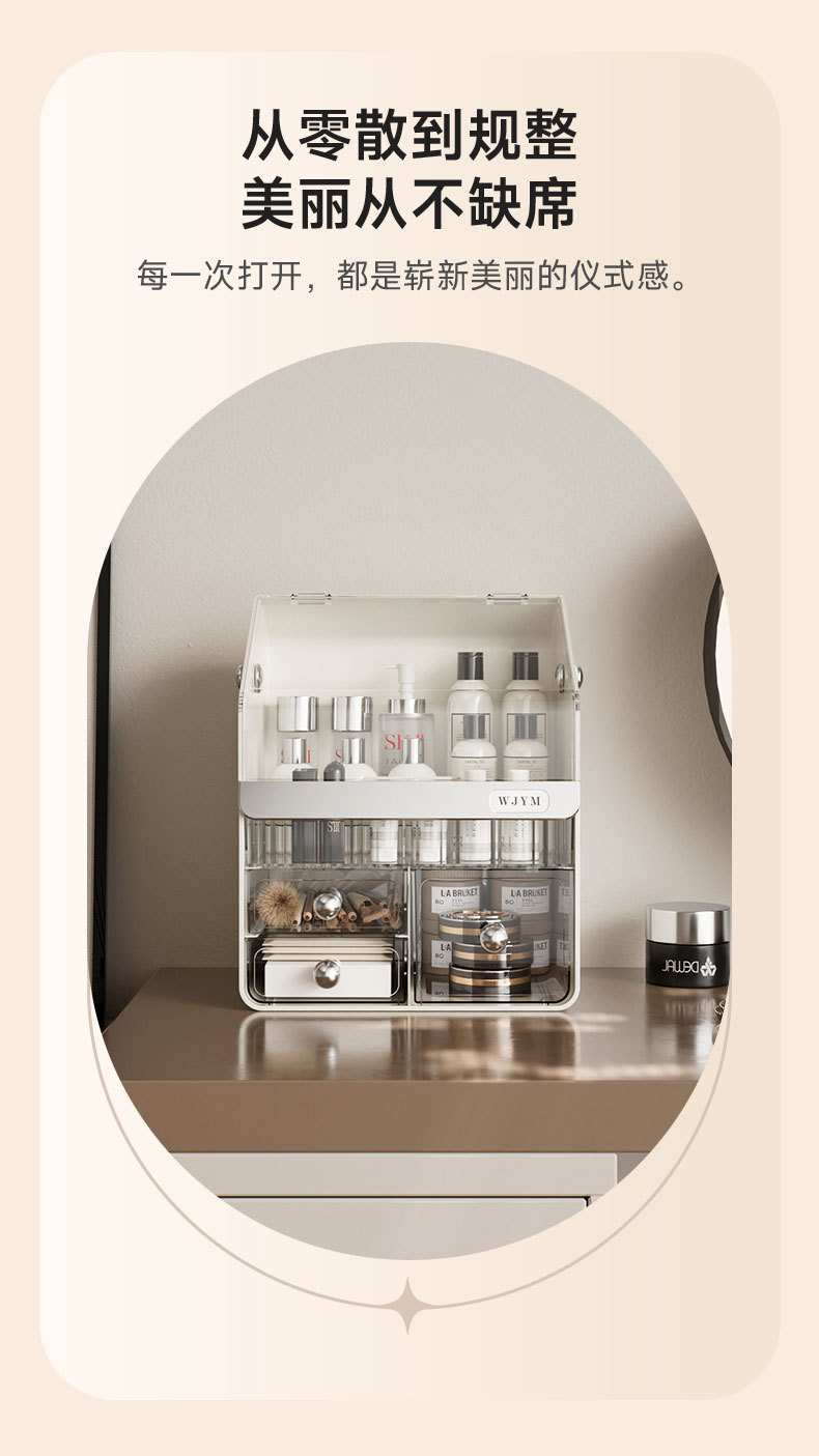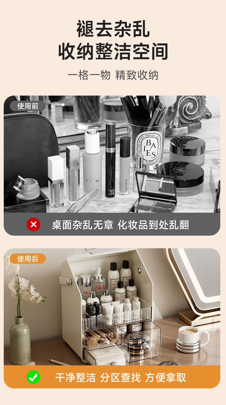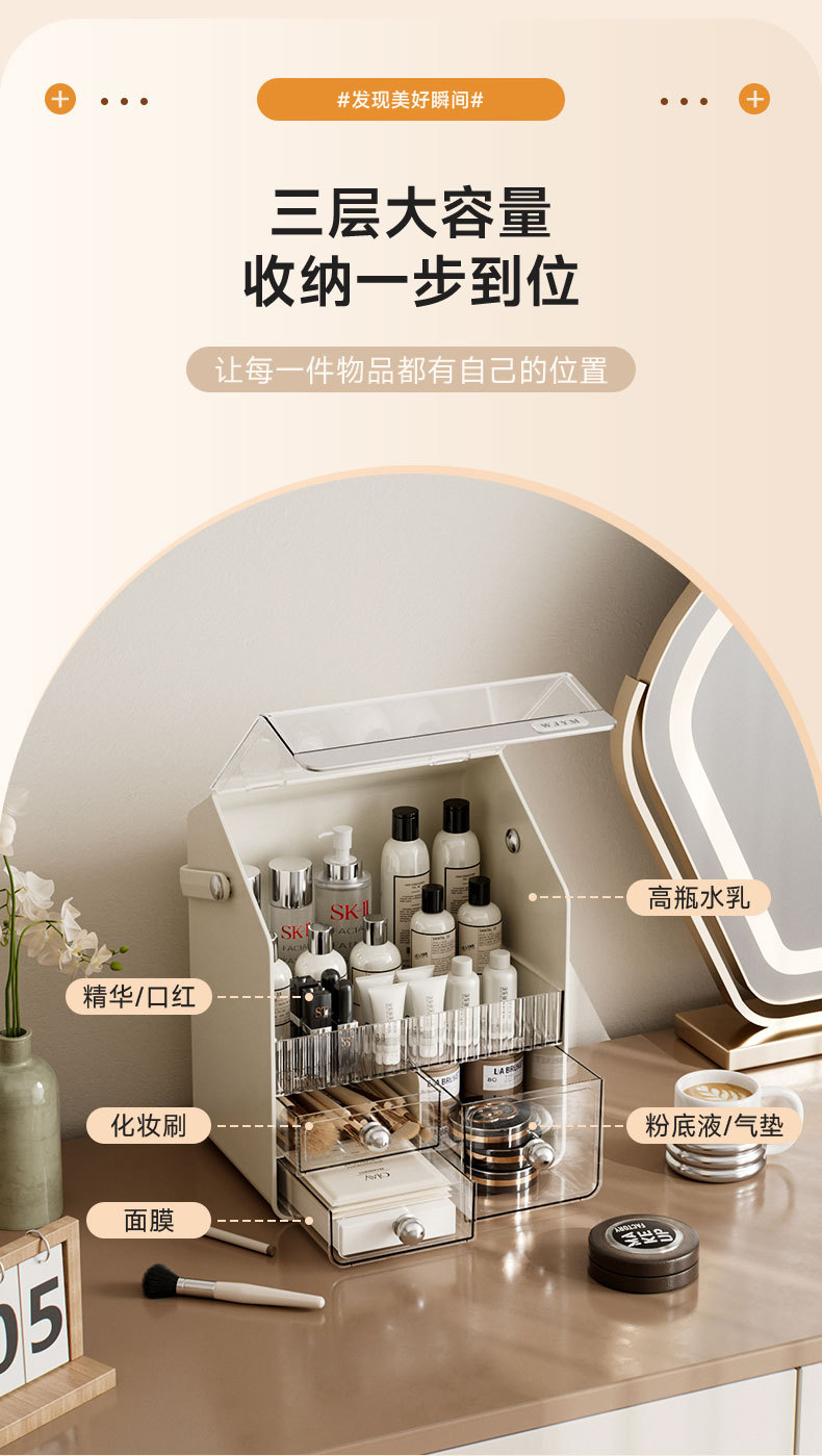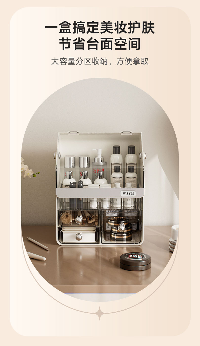 跨境大容量化妆刷化妆品收纳盒高级感梳妆台桌面护肤品收纳置物架