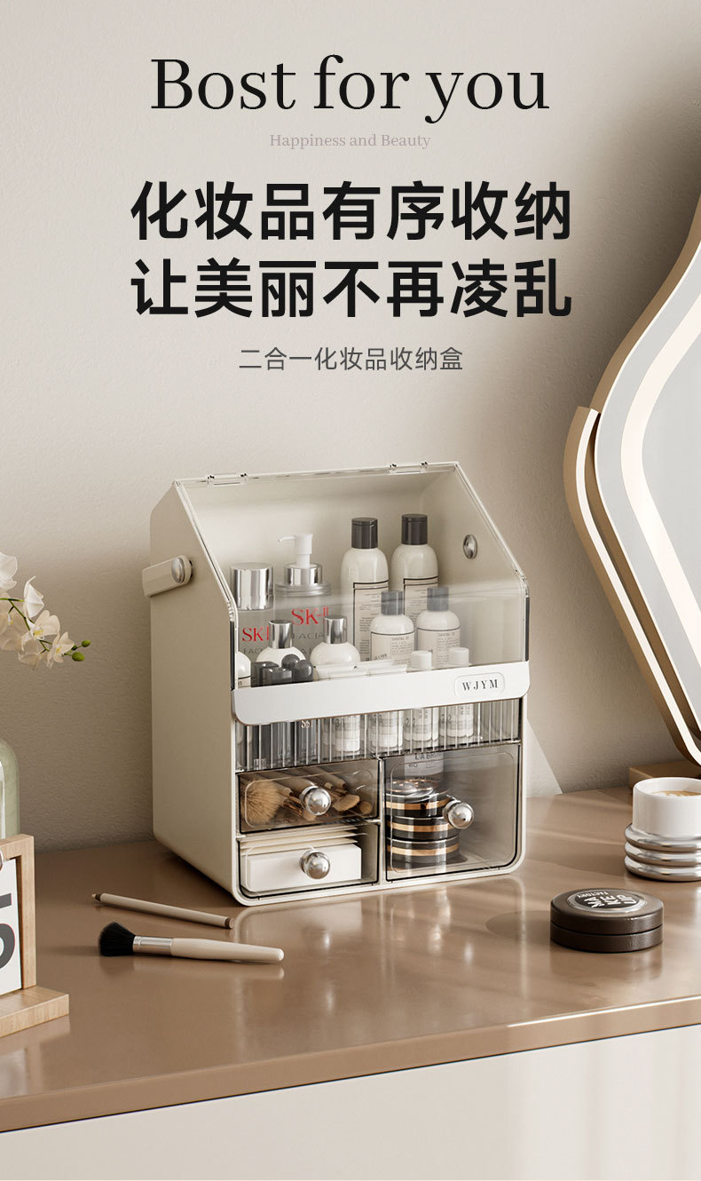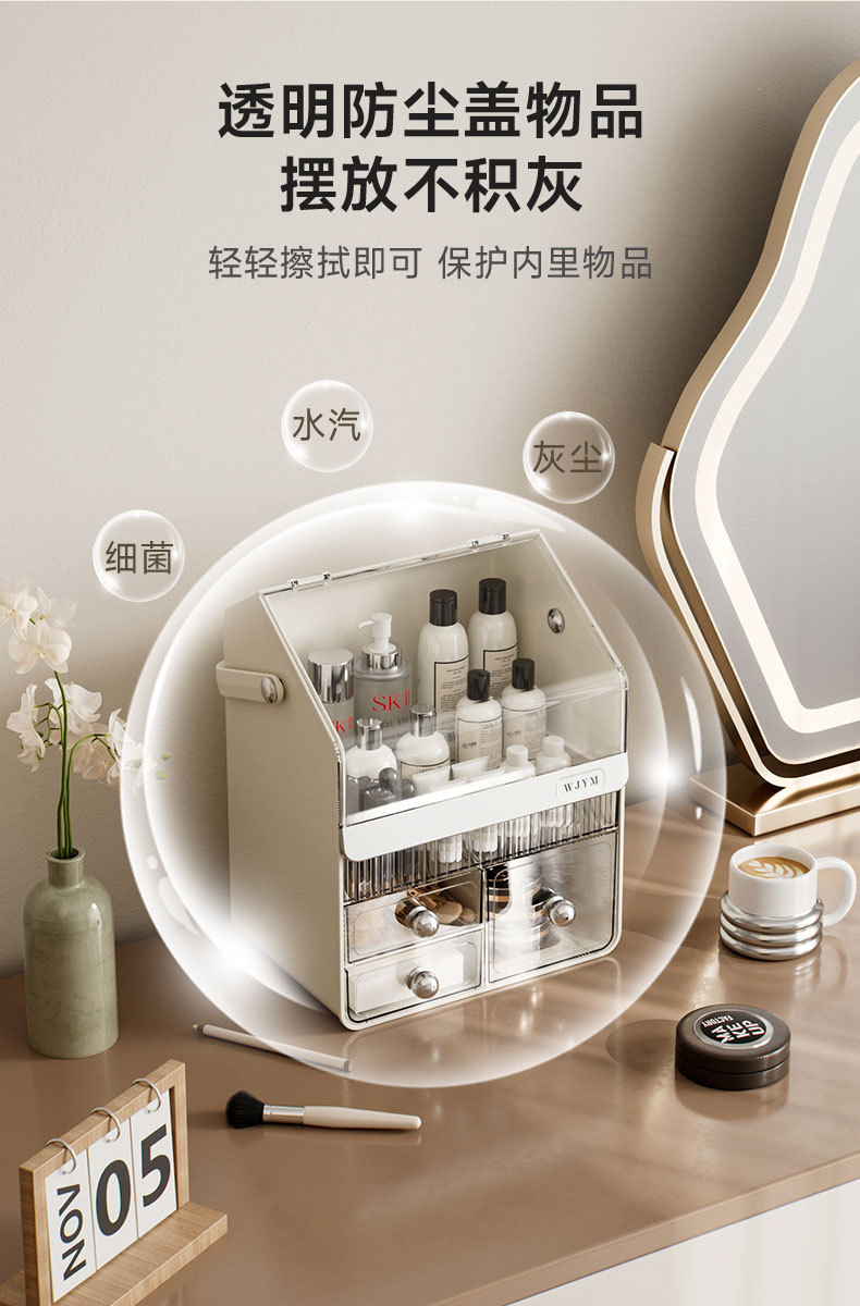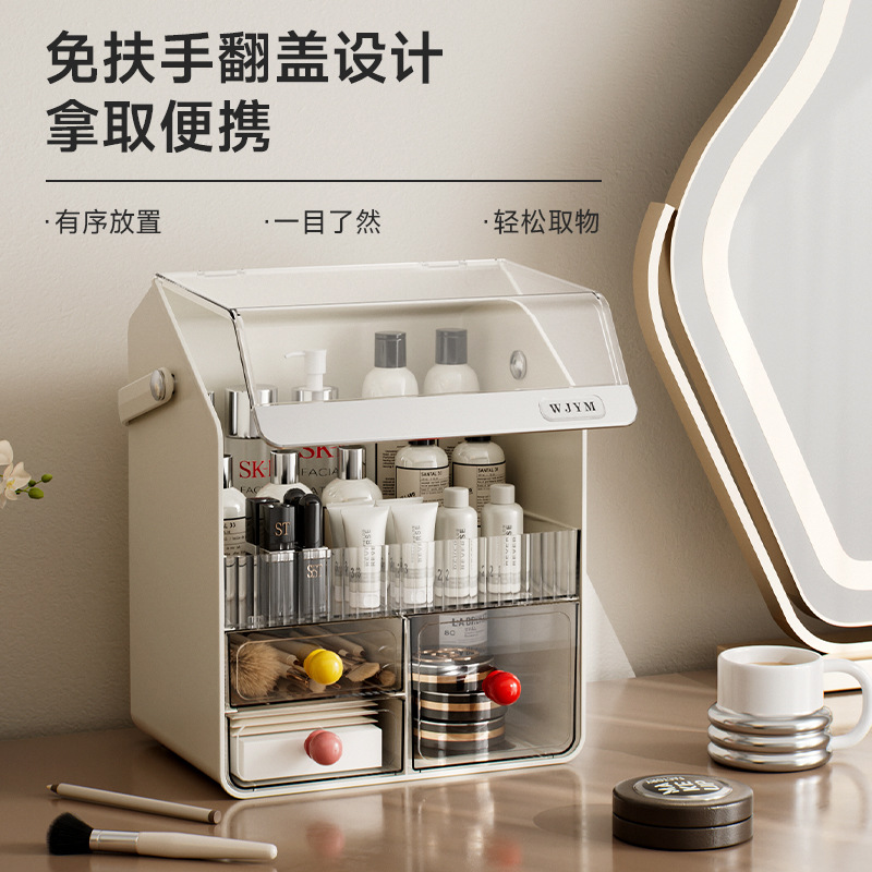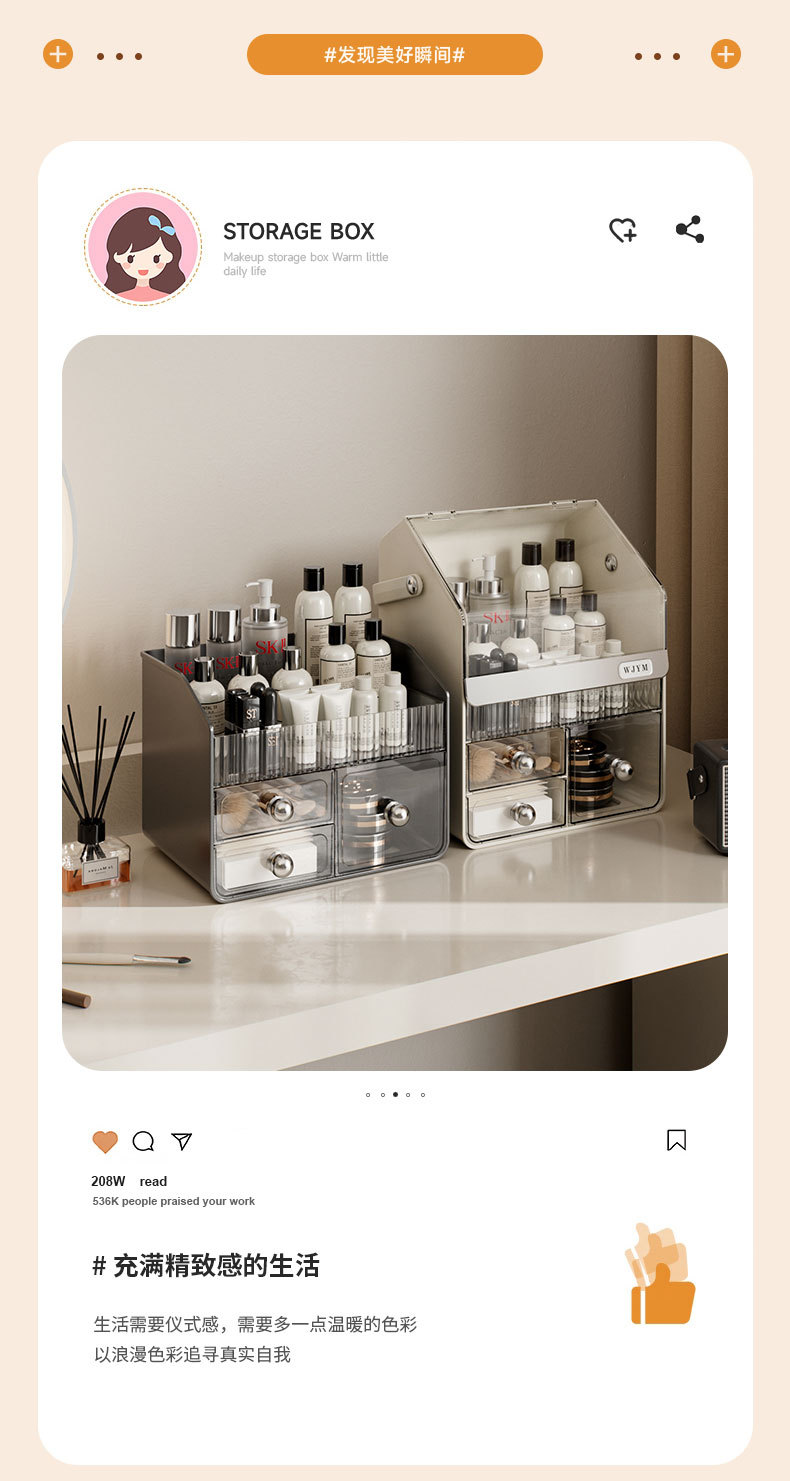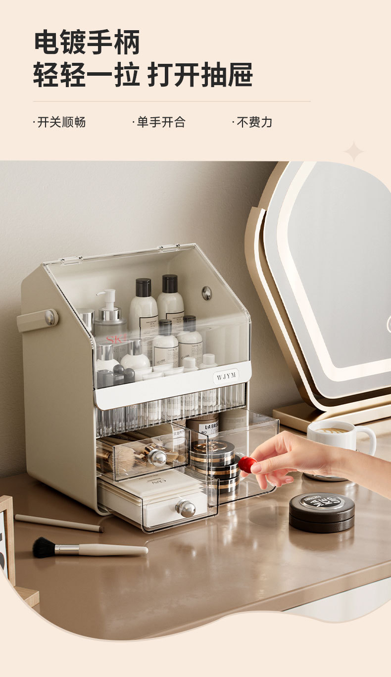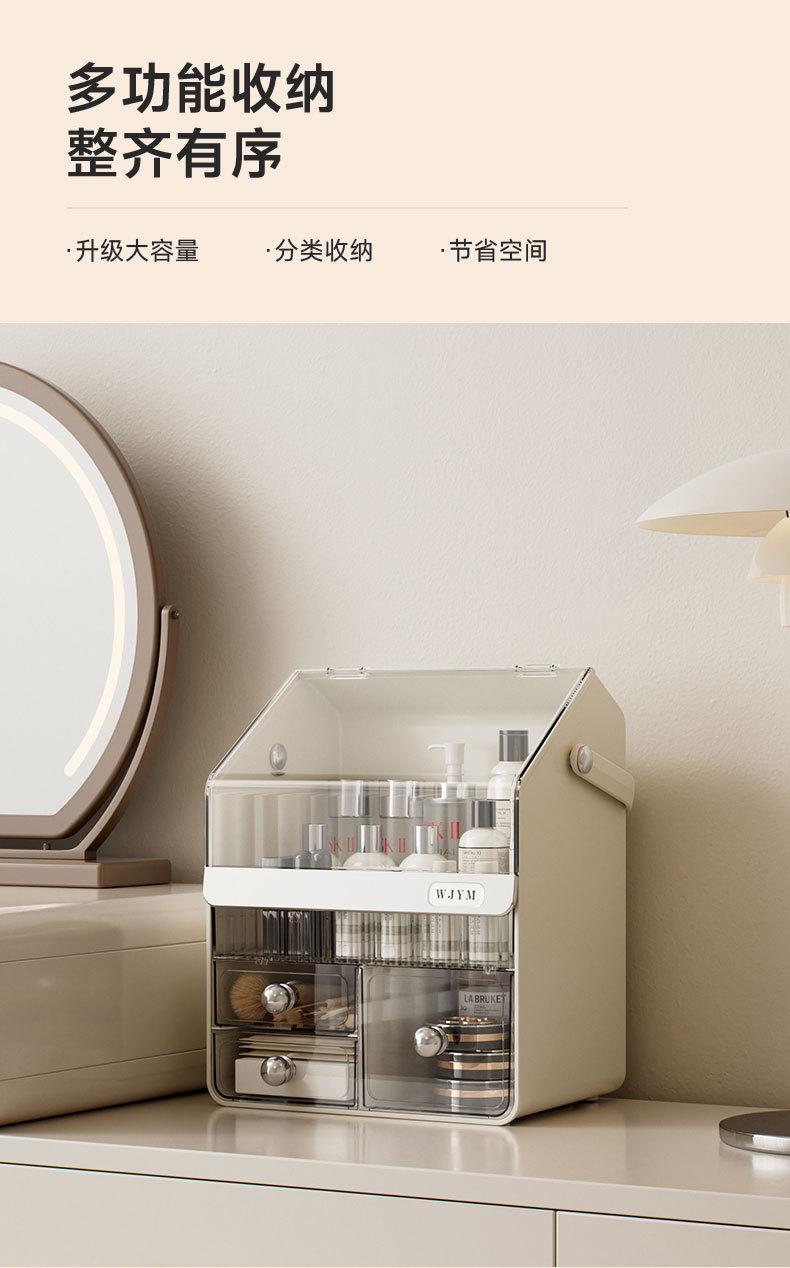 跨境大容量化妆刷化妆品收纳盒高级感梳妆台桌面护肤品收纳置物架