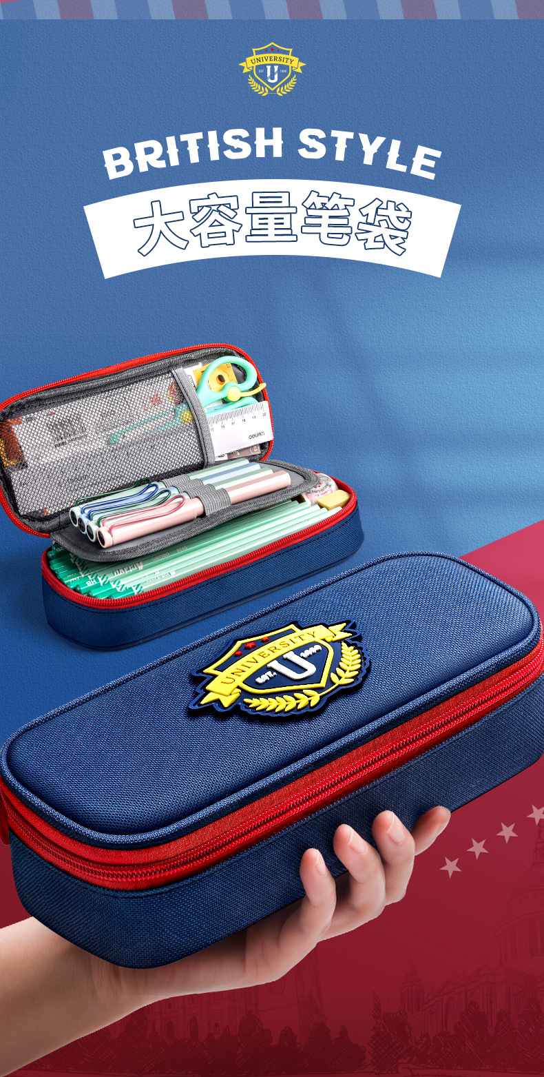 英伦风笔袋三层大容量文具盒学生高颜值铅笔盒帆布文具袋笔袋批发