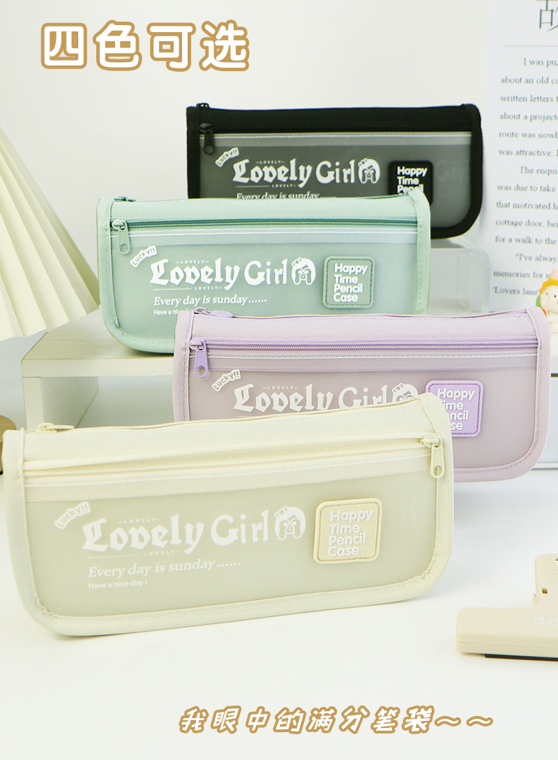 跨境外贸大容量中小学生文具盒简约文具袋ins高颜值女孩透明笔袋