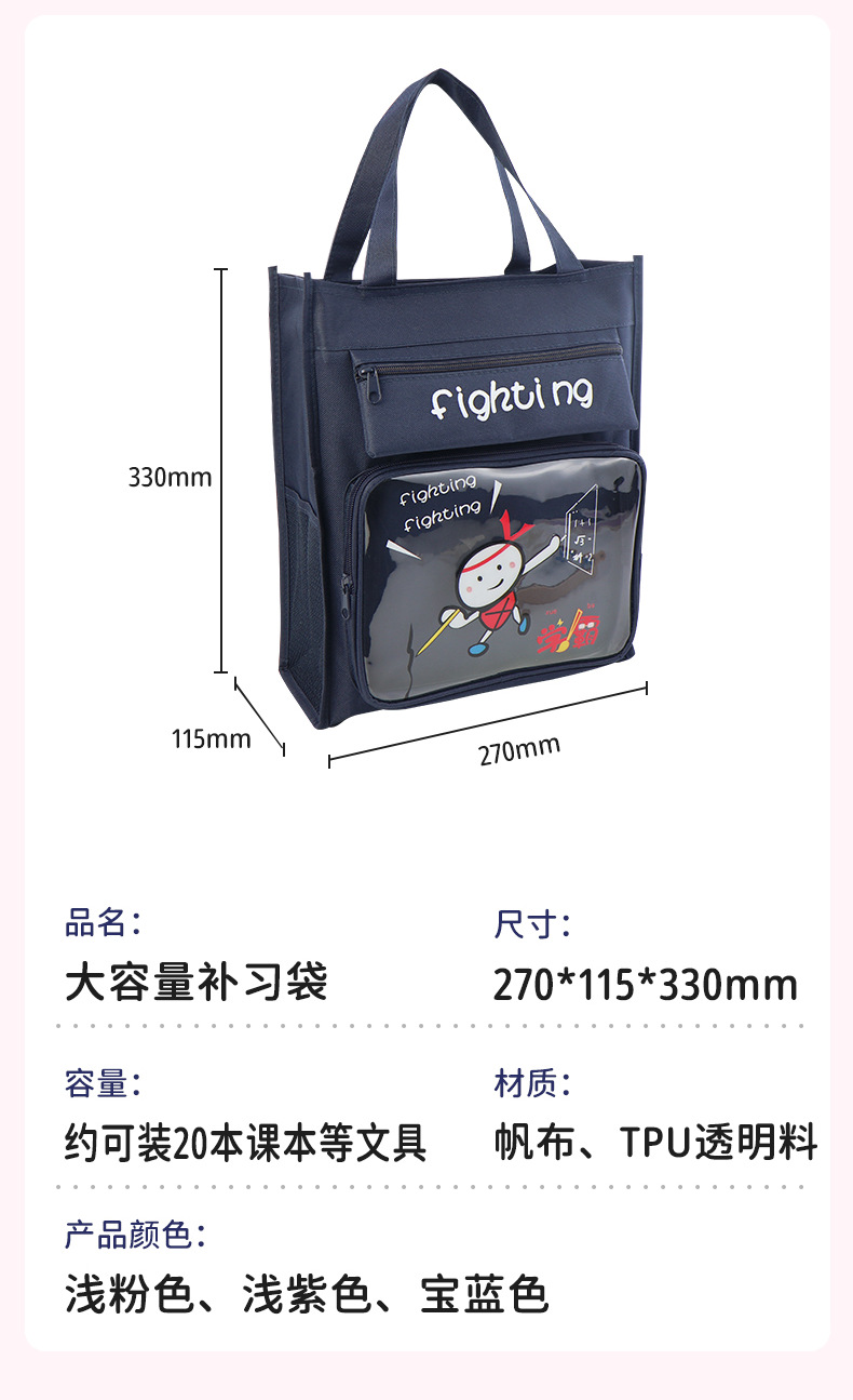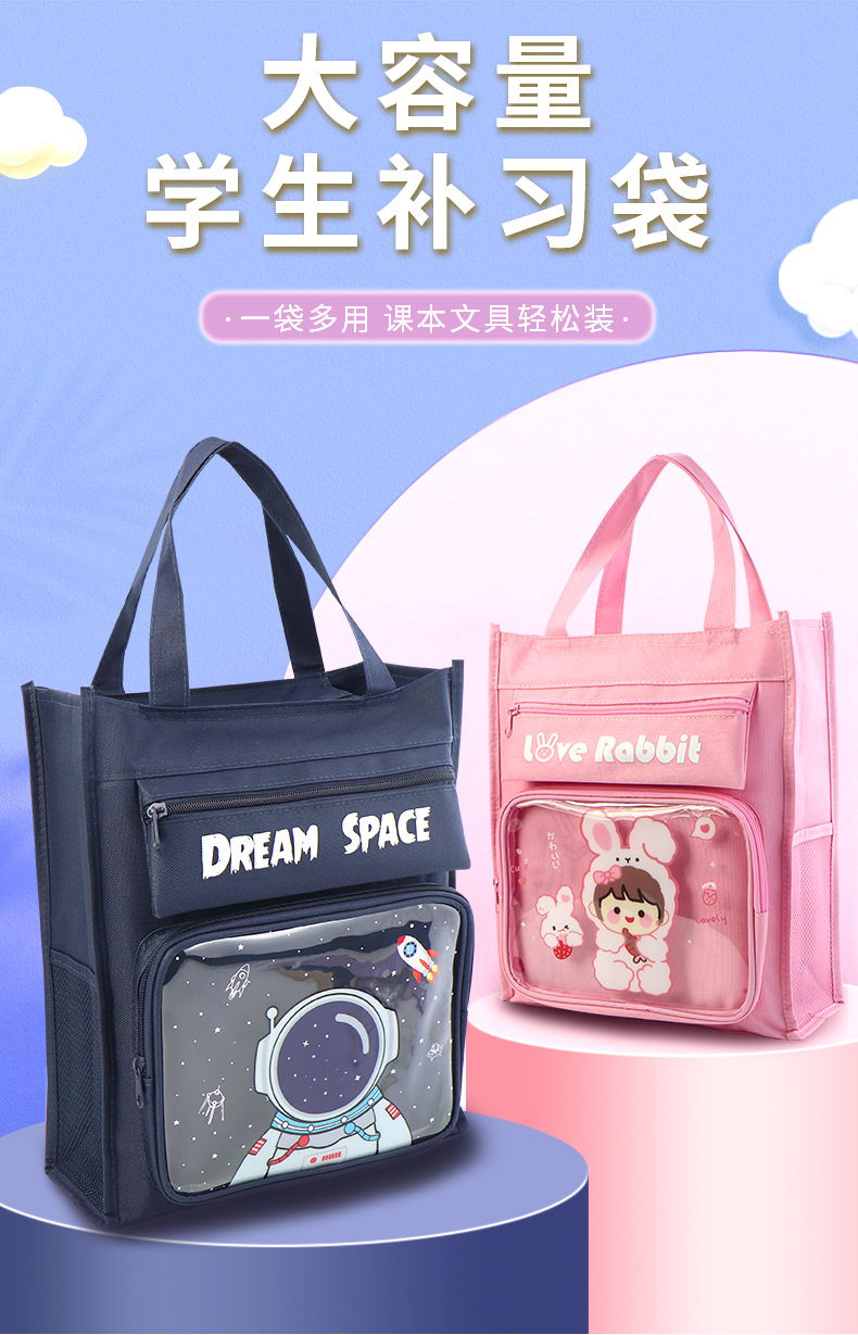 大容量补习袋牛津可爱卡通手提拎书袋儿童学习补课袋多功能美术袋