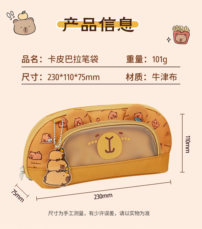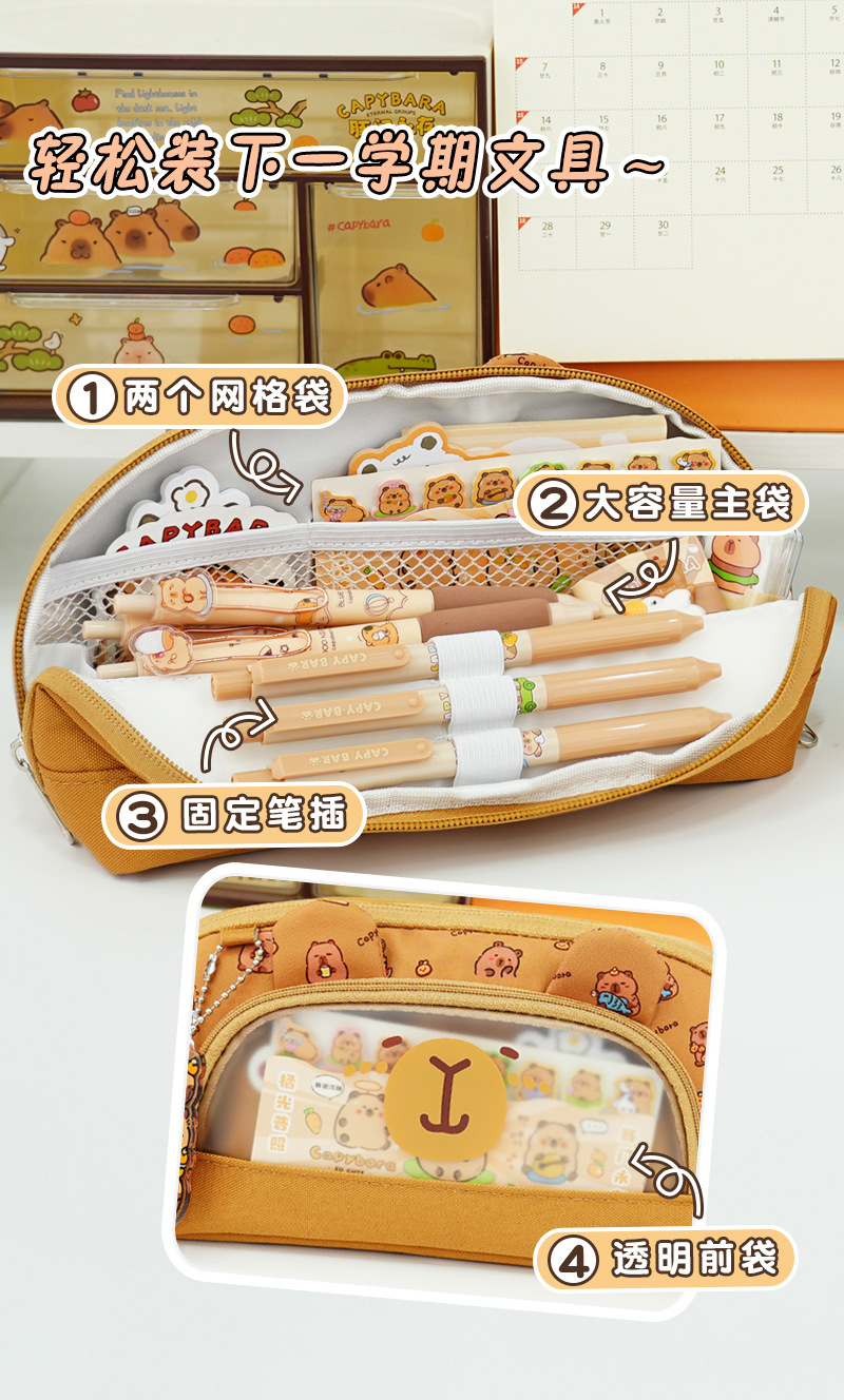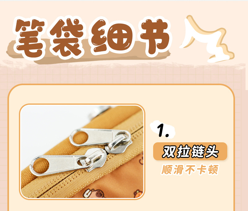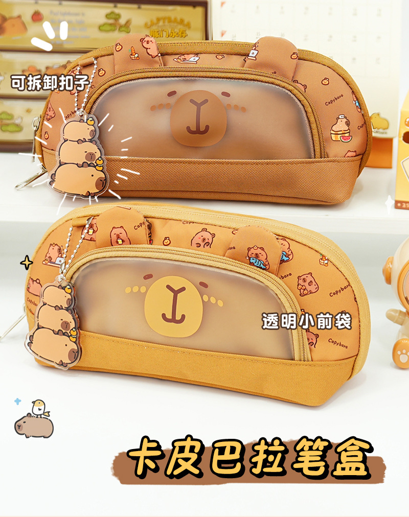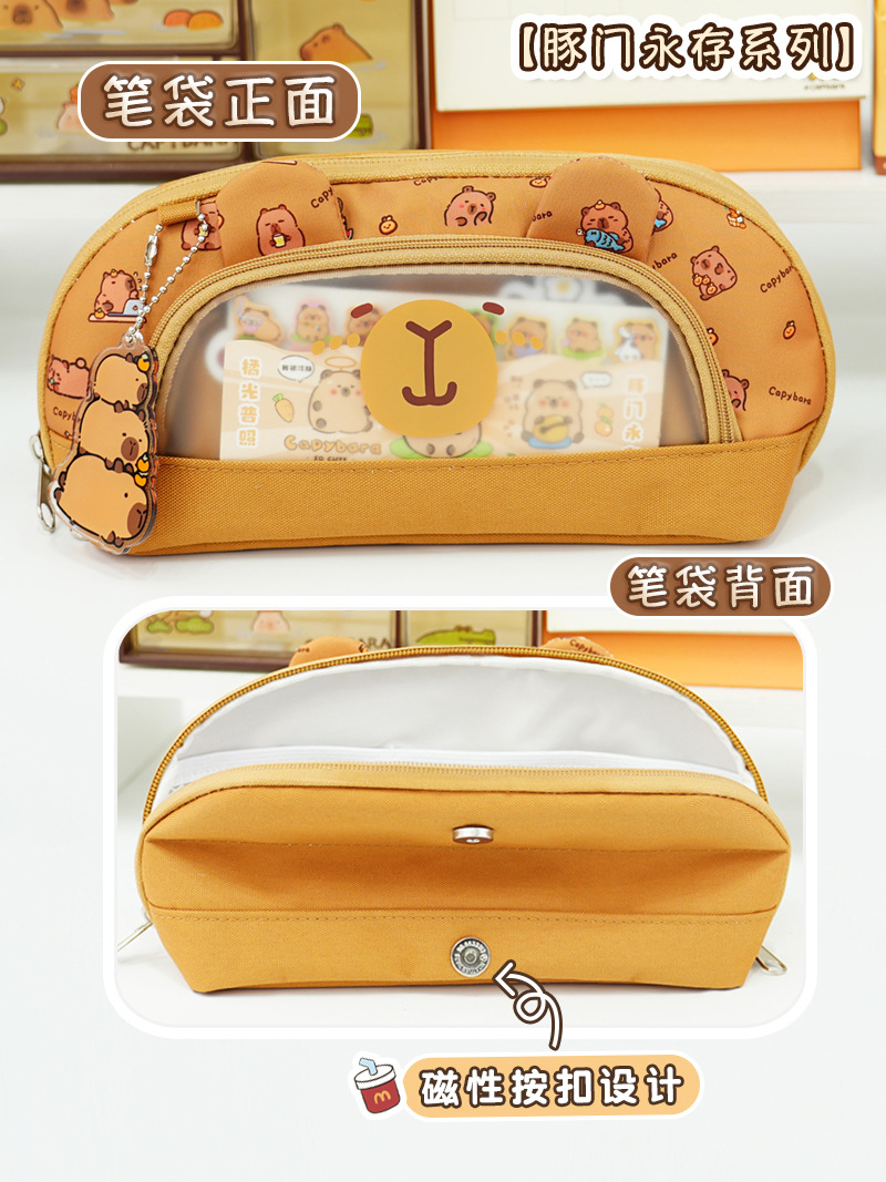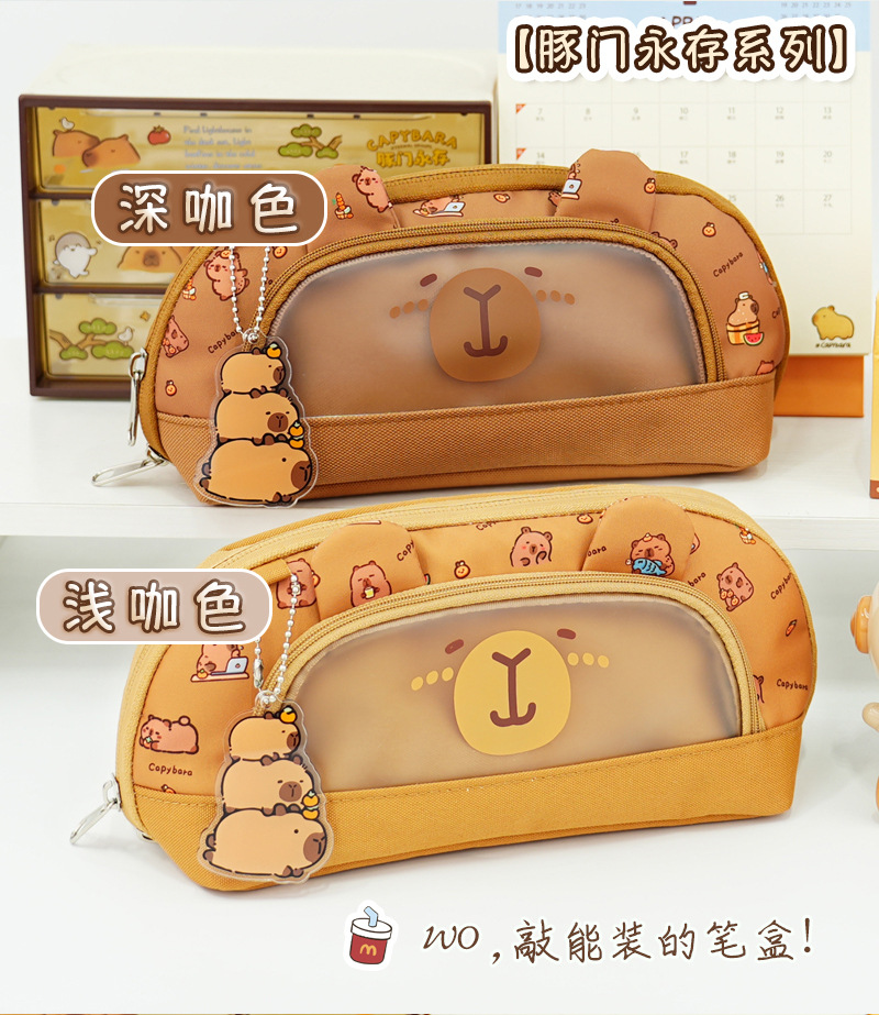 卡皮巴拉系列双拉链翻盖笔袋大容量文具盒小学生铅笔袋高颜值笔袋