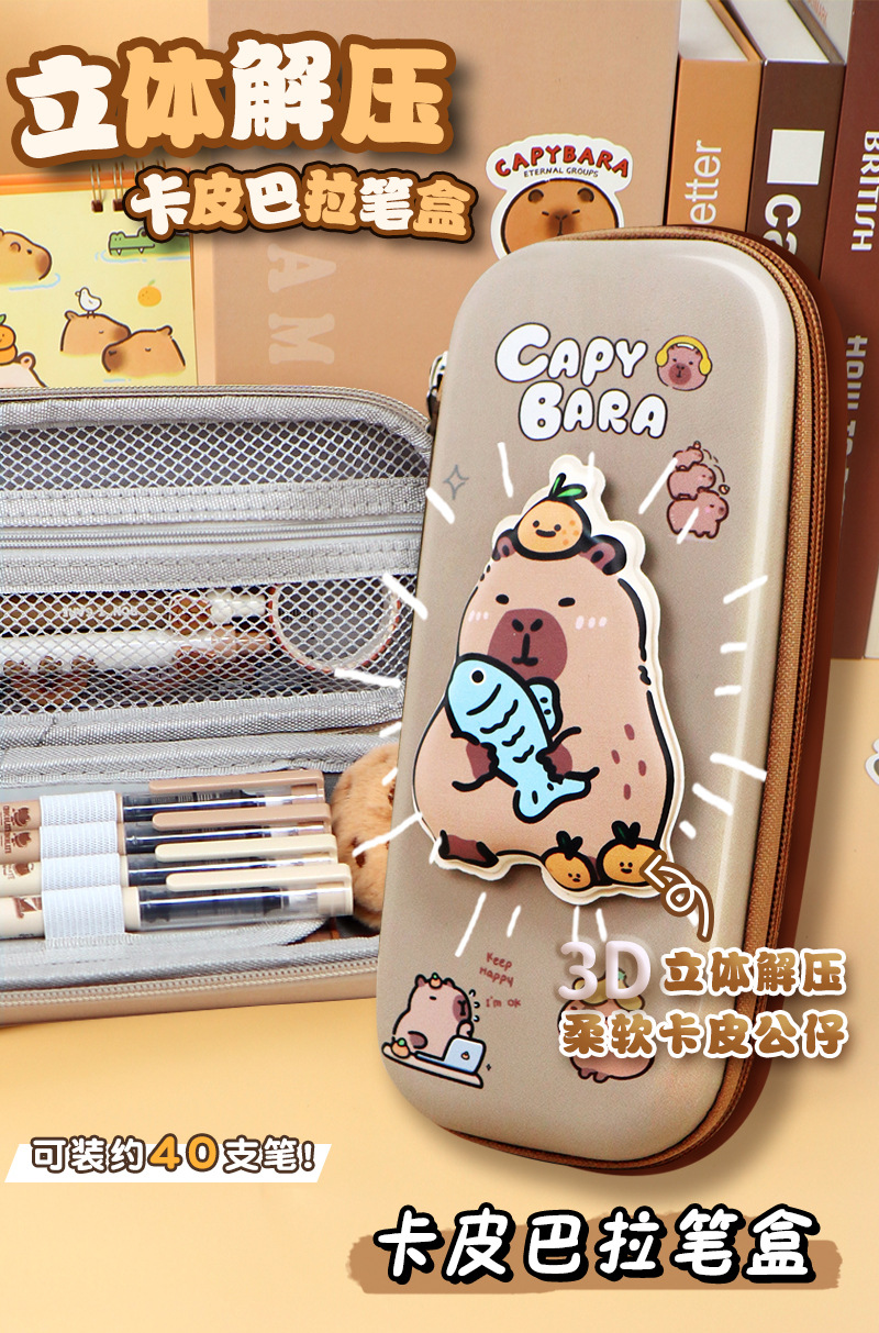 卡皮巴拉ins风小众笔袋大容量耐脏小学生高颜值文具盒跨境文具袋
