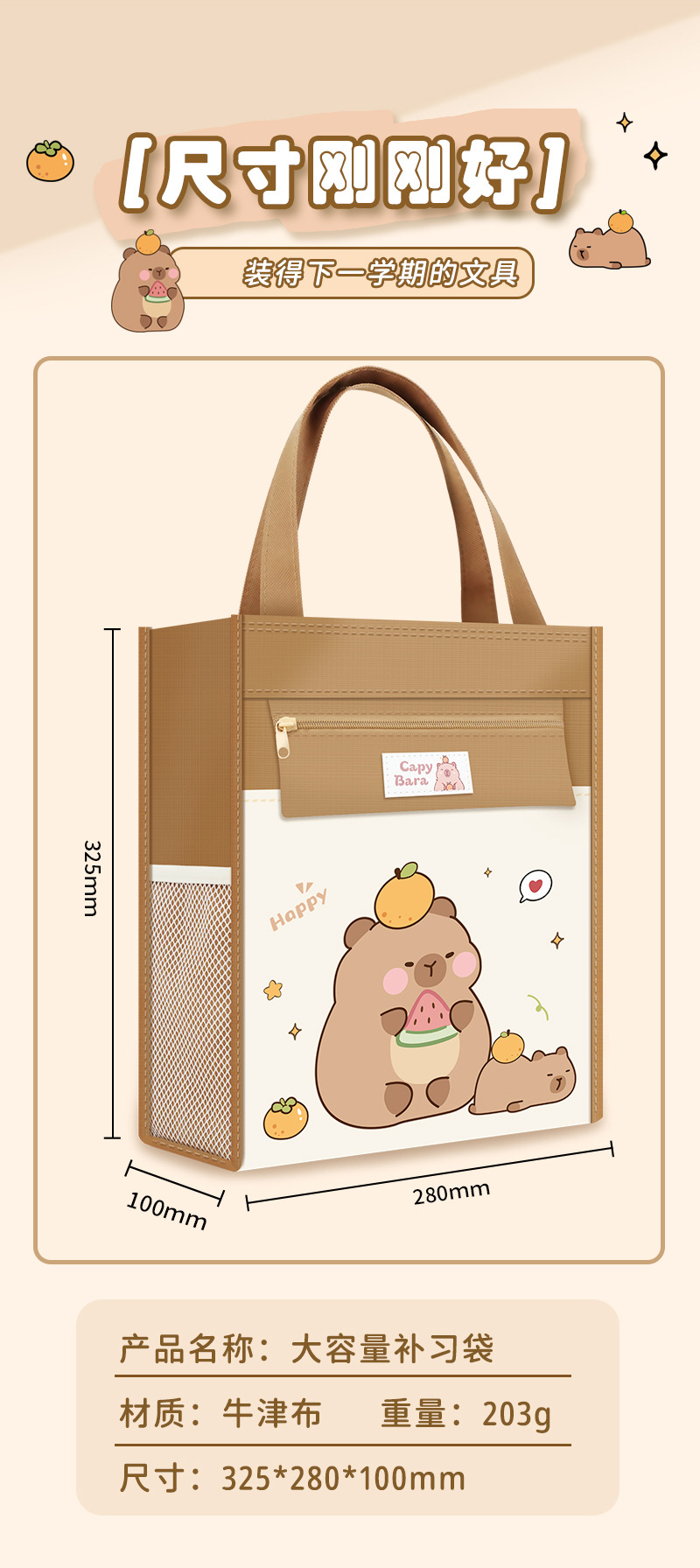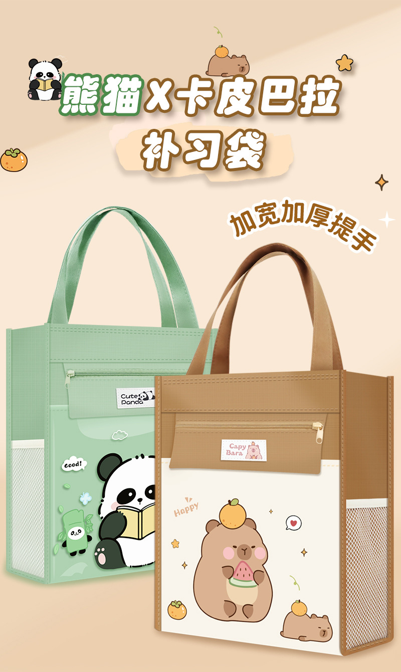 创意ins风补课袋儿童补习包双侧袋大容量美术袋高颜值拉链补习袋