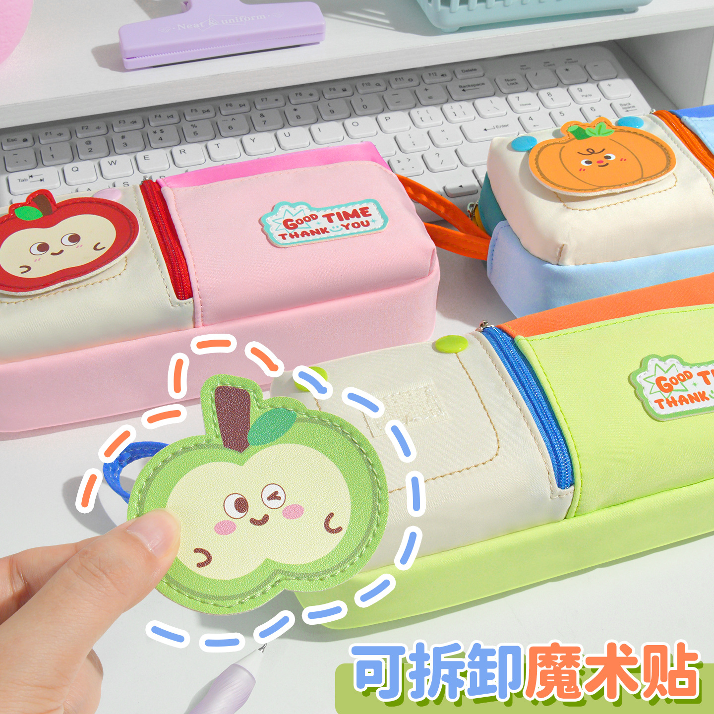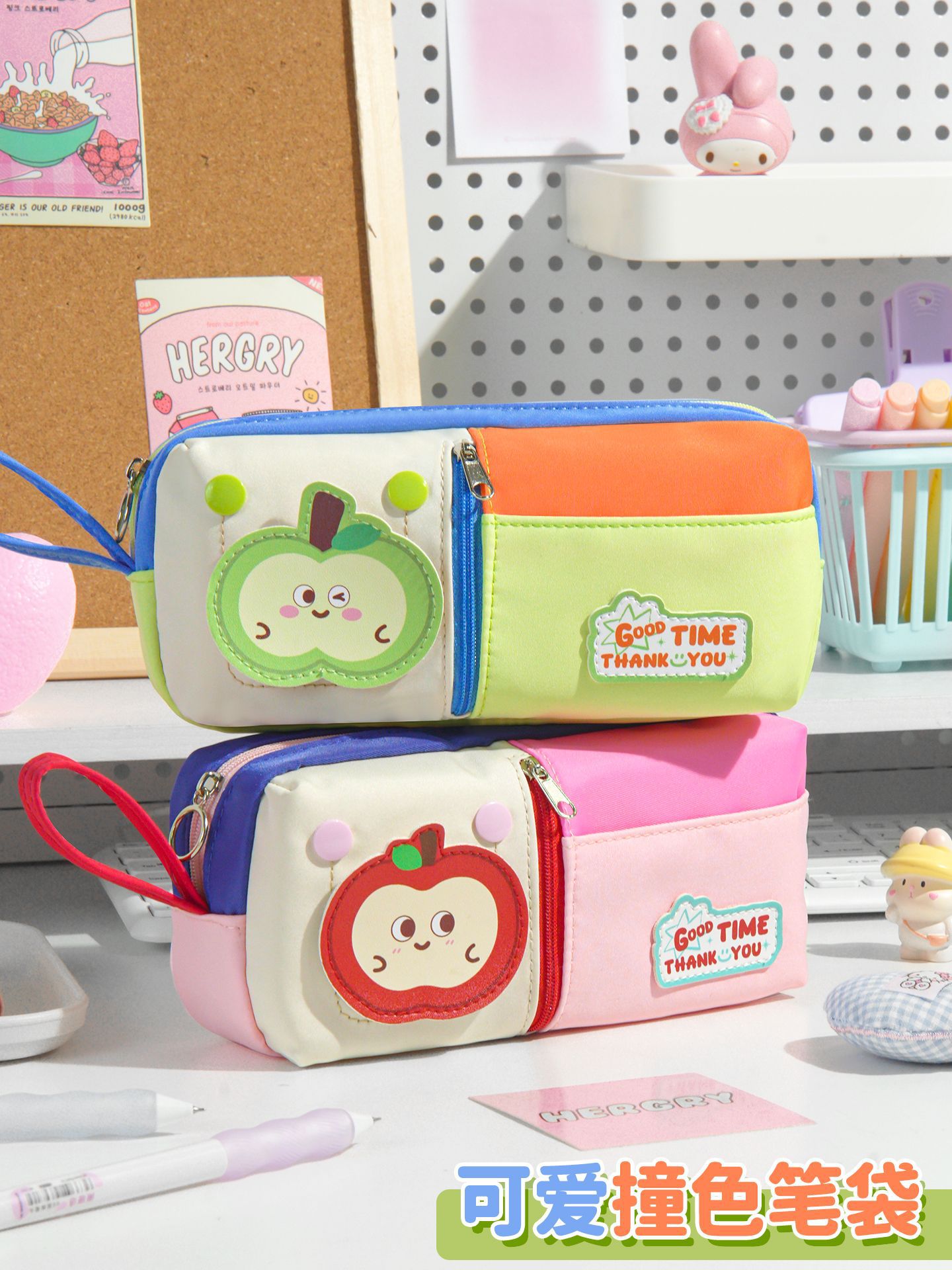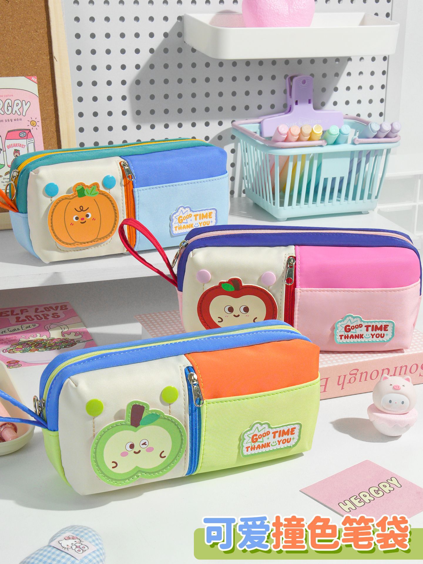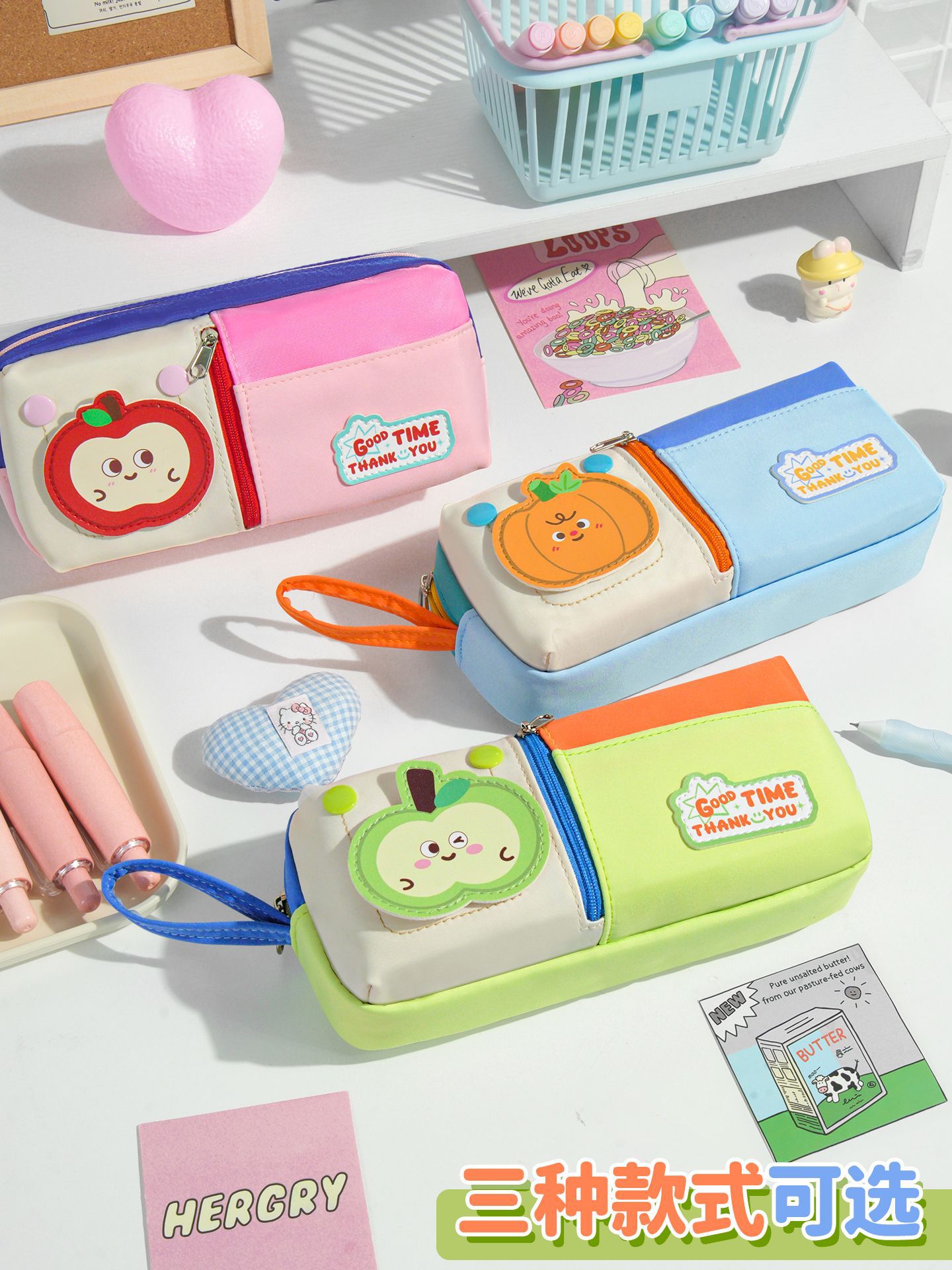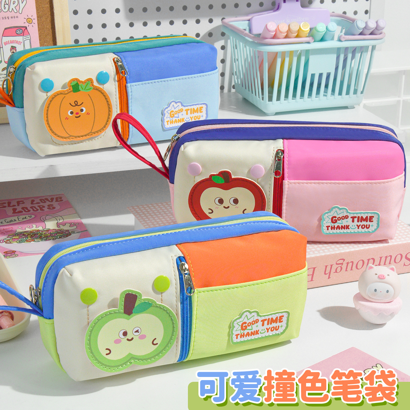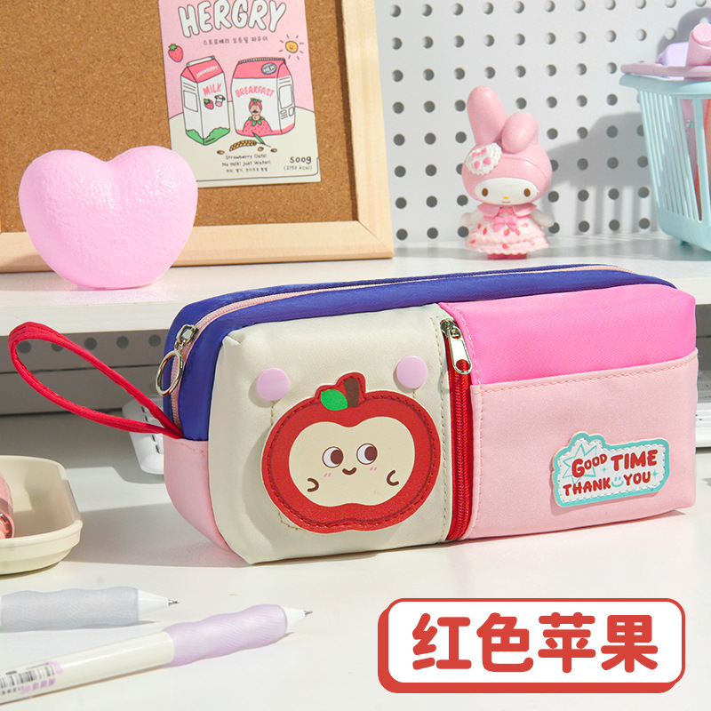 可爱撞色双层文具袋卡通苹果大容量高颜值笔袋小学生新款笔盒笔袋