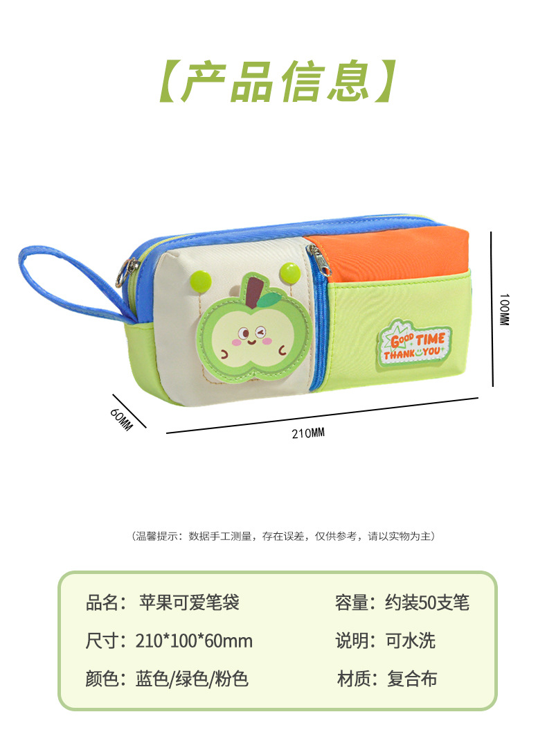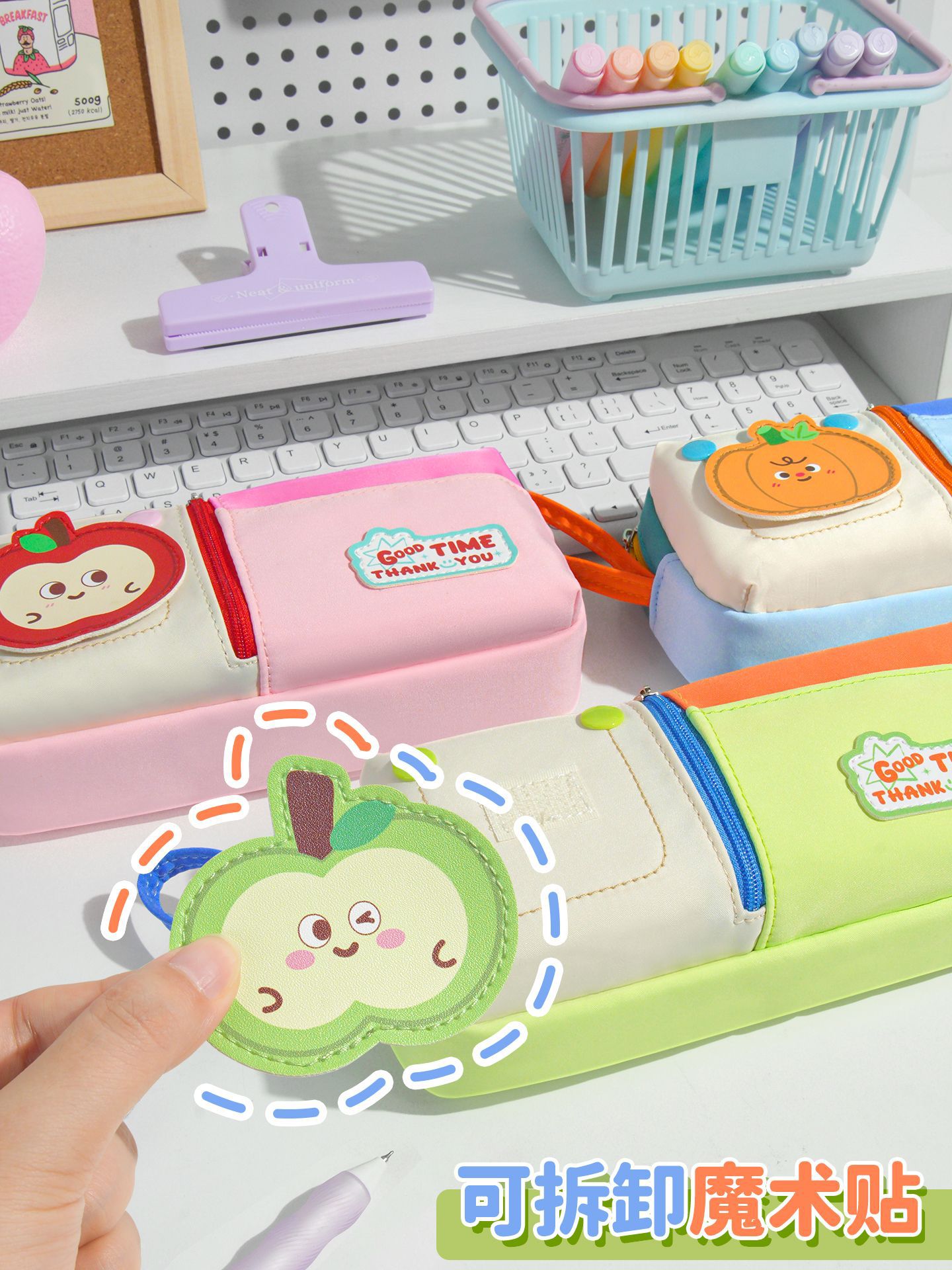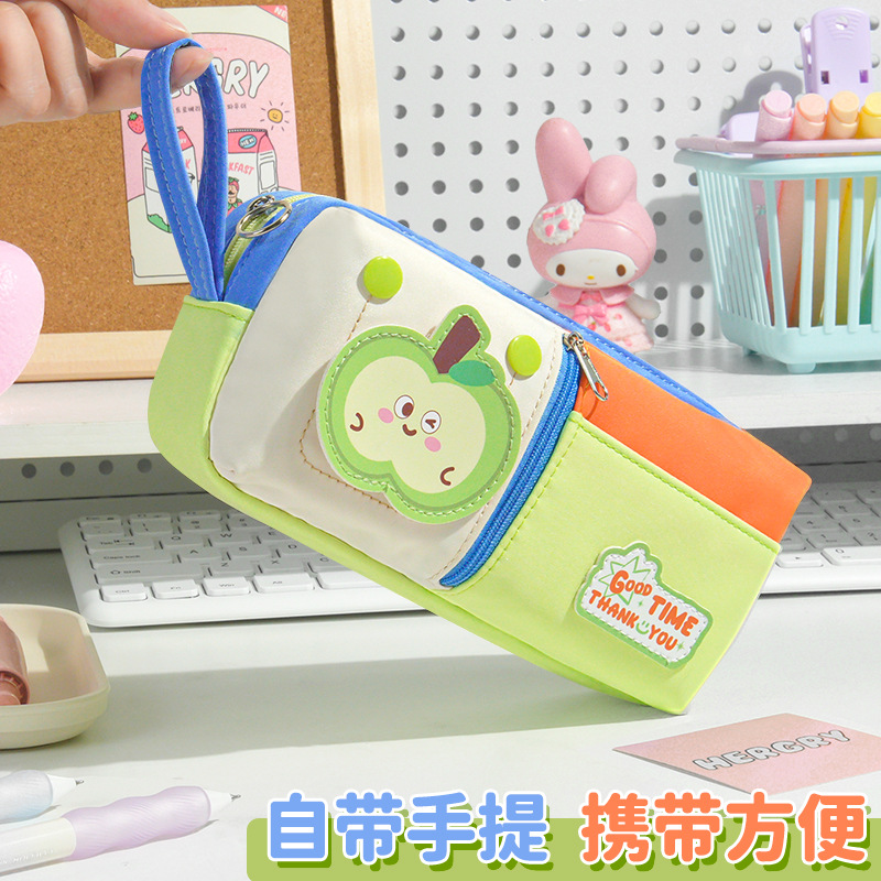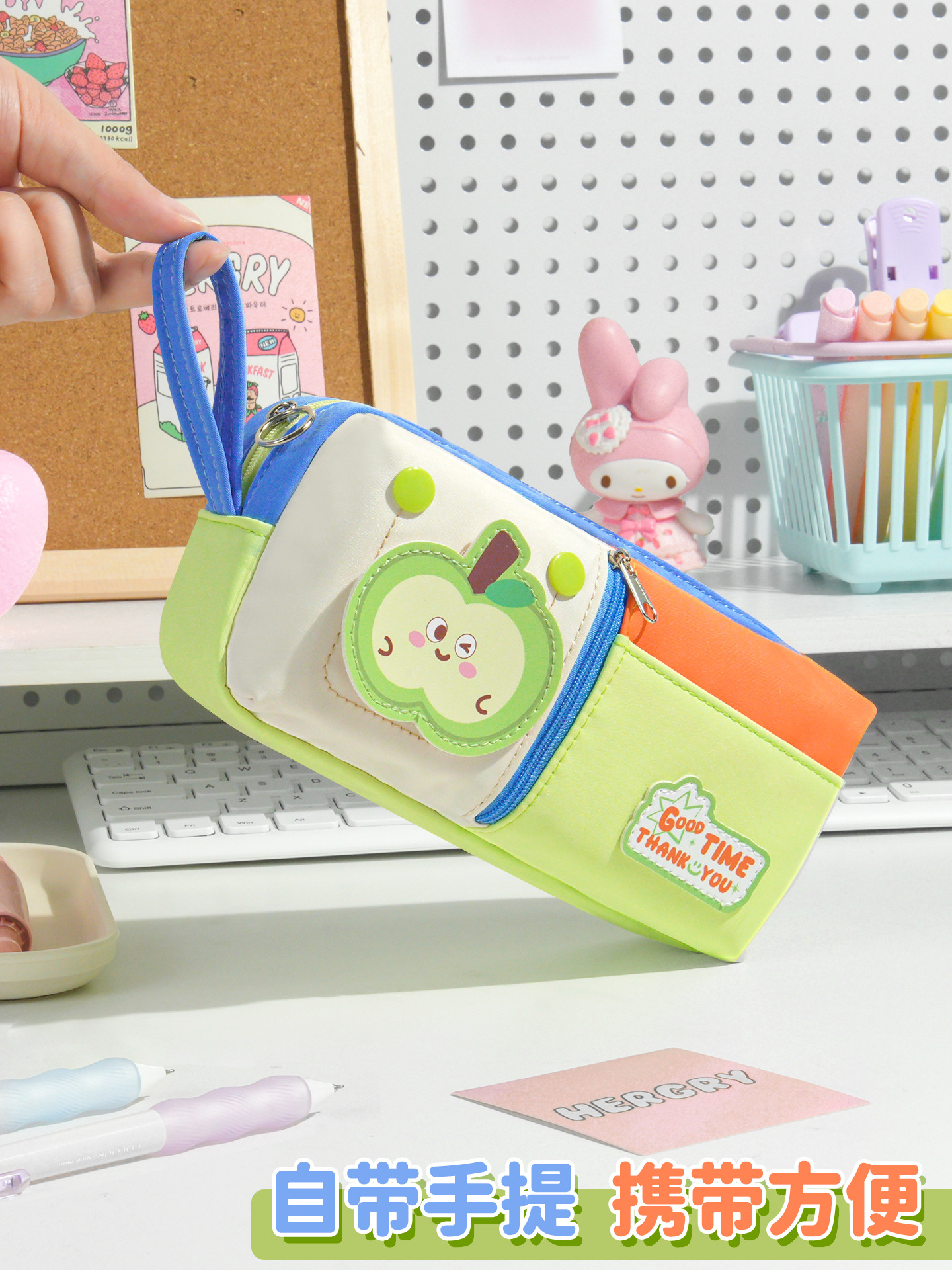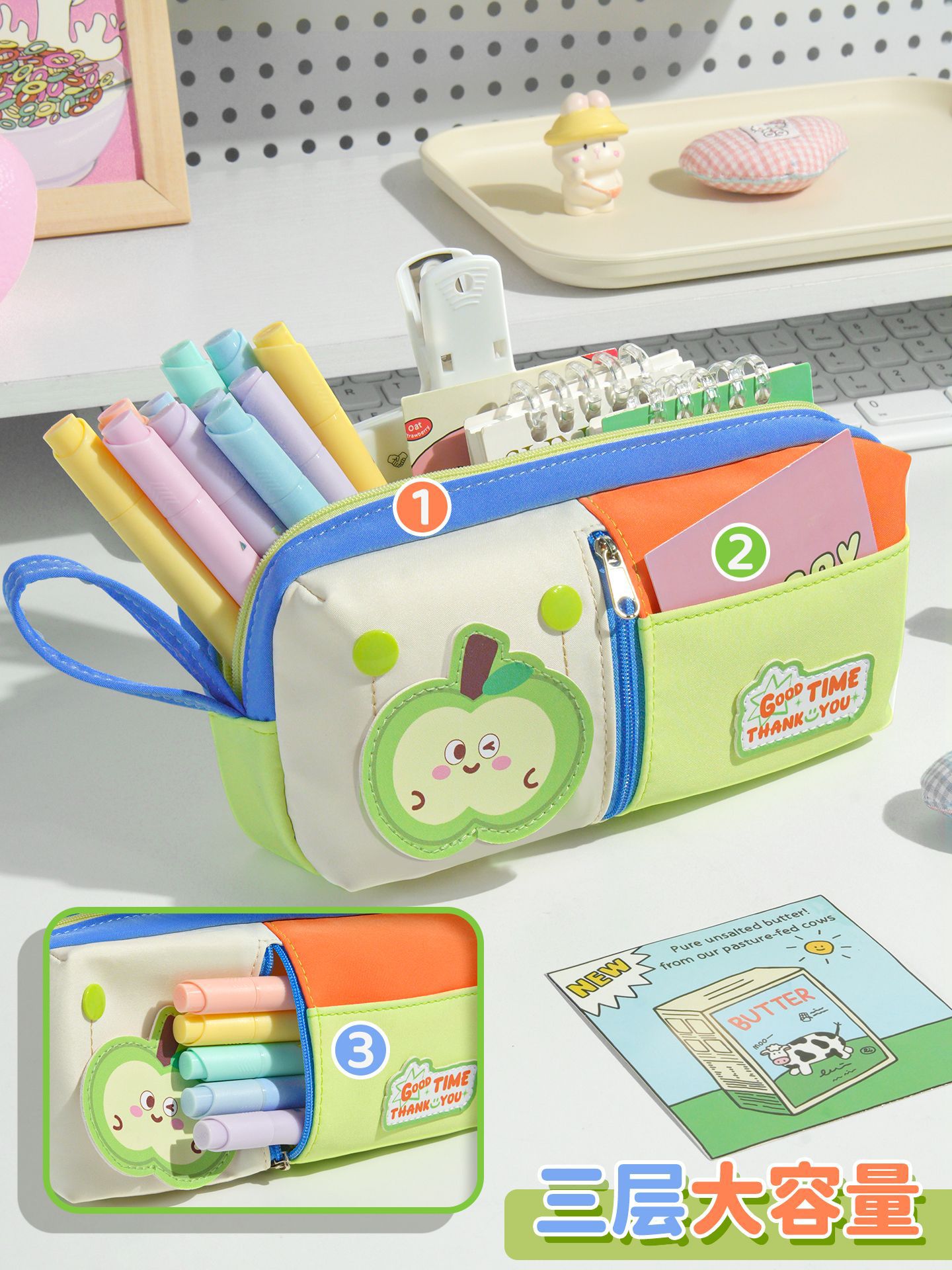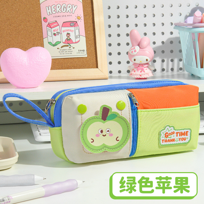 可爱撞色双层文具袋卡通苹果大容量高颜值笔袋小学生新款笔盒笔袋
