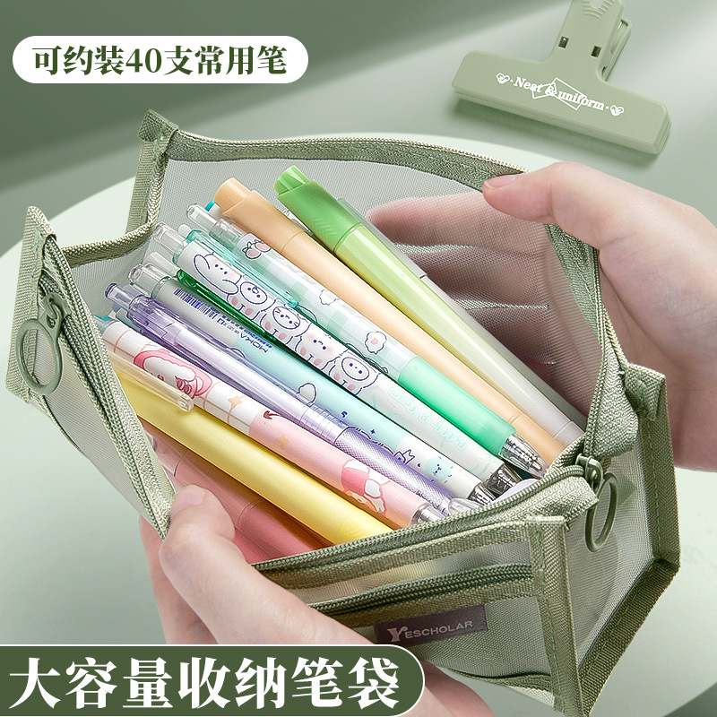 笔袋透明网纱学生考试专用文具袋双层立体大容量文具盒小学生女款