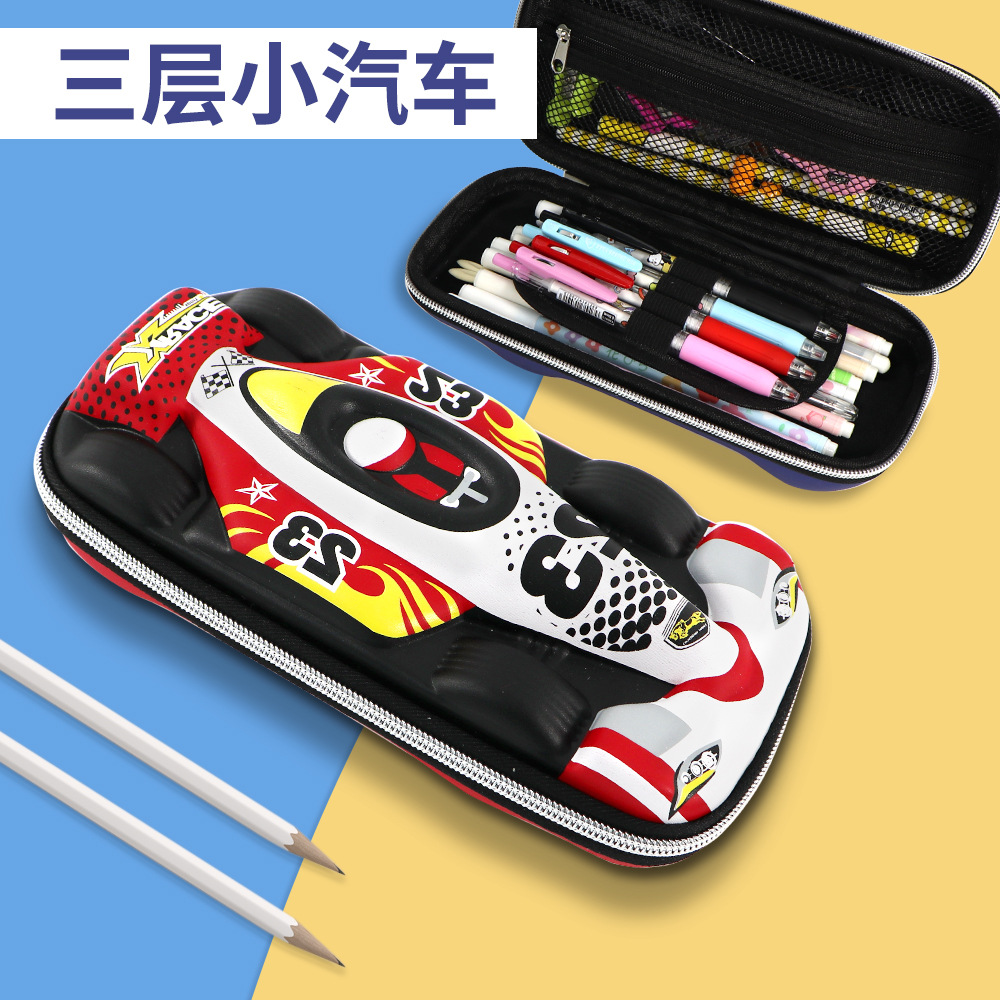 三层EVA 大容量卡通男女孩款儿童简约汽车铅笔盒文具袋防水收纳盒