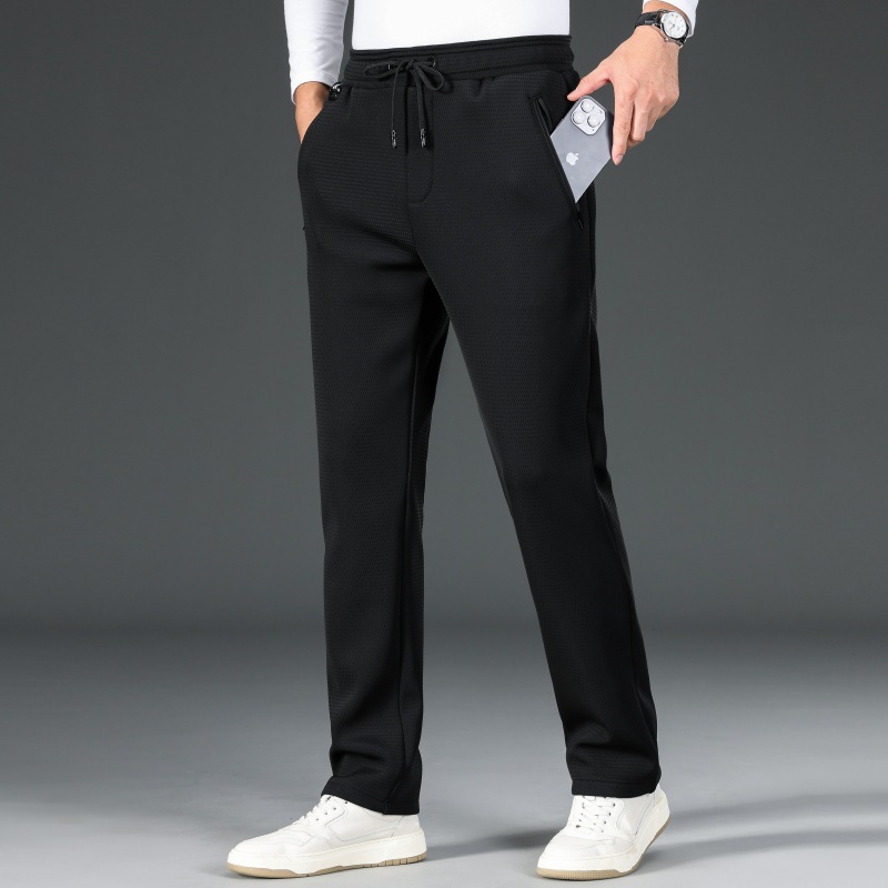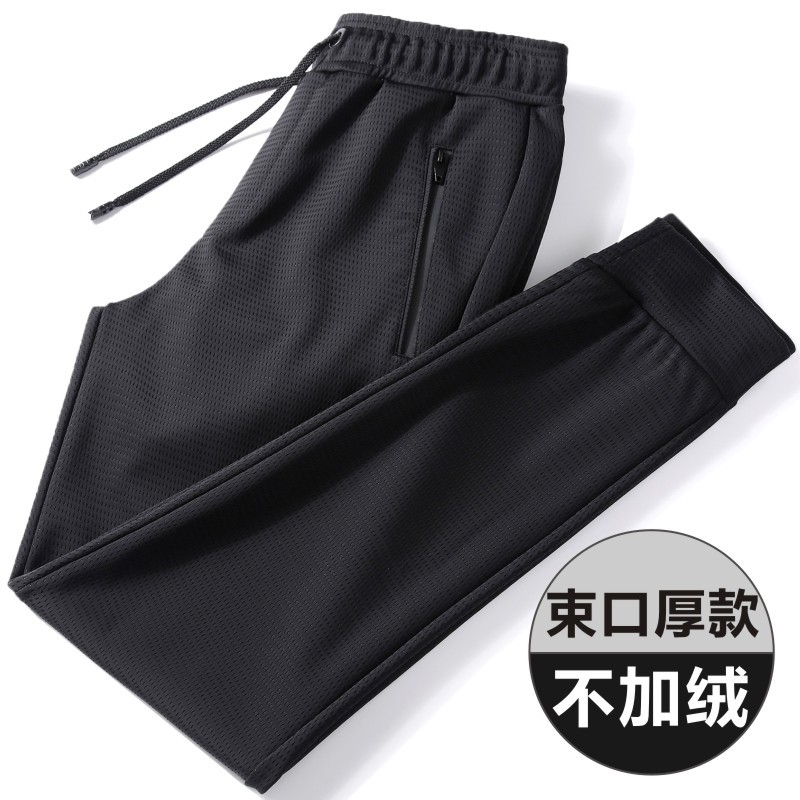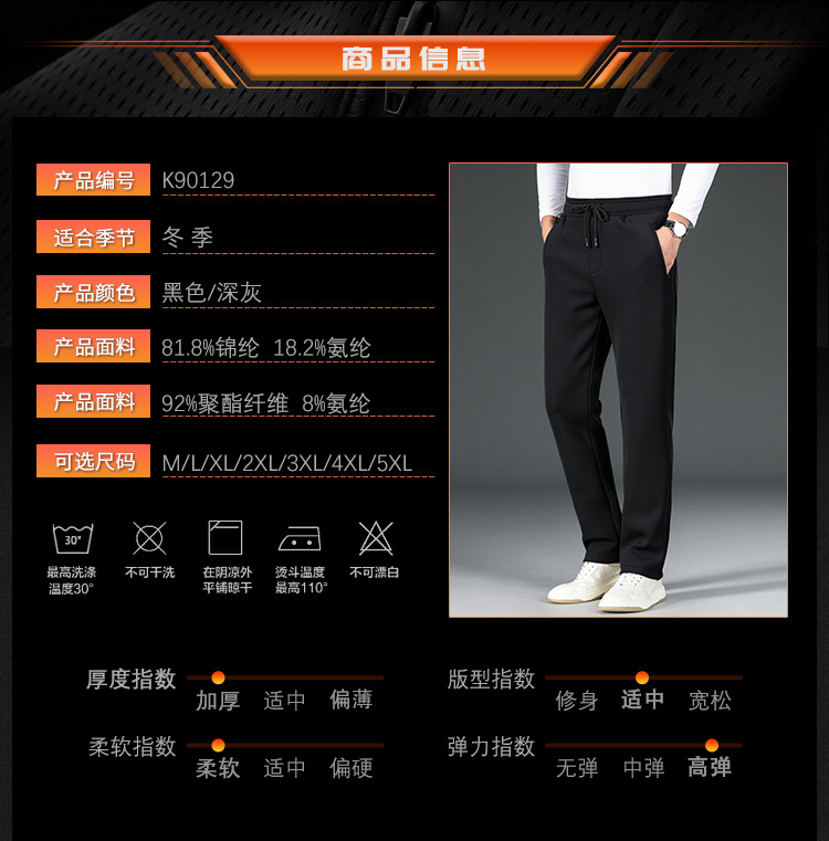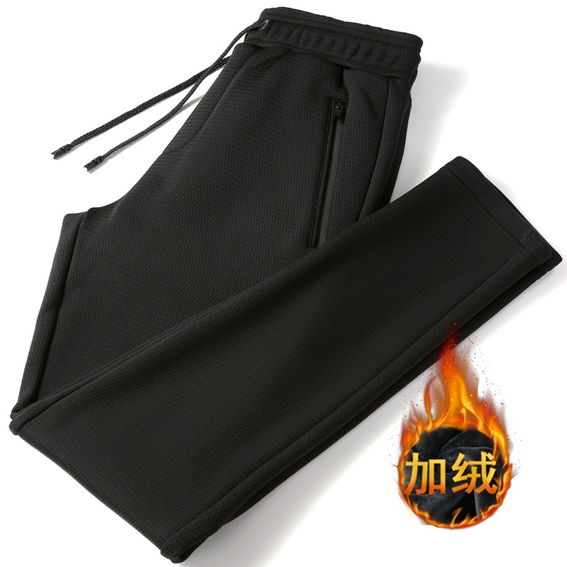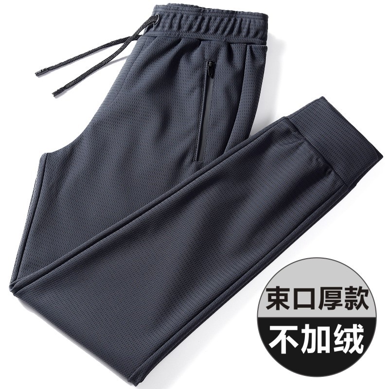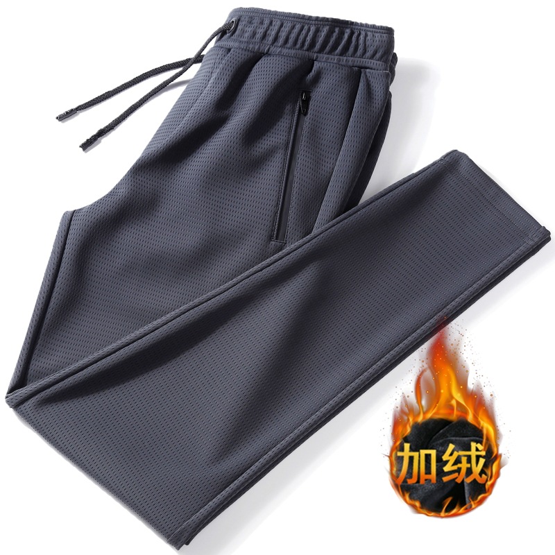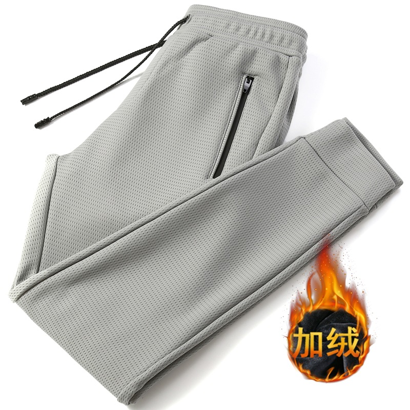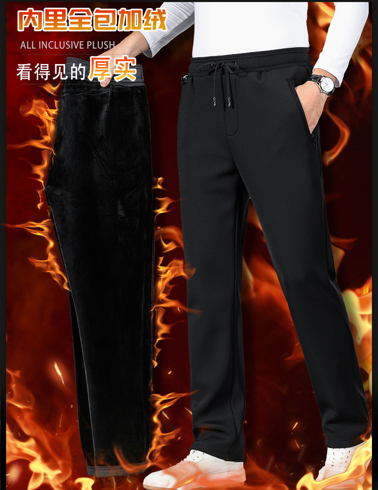 高端不粘灰休闲裤男春季弹力加绒裤子男士运动裤宽松直筒卫裤男38