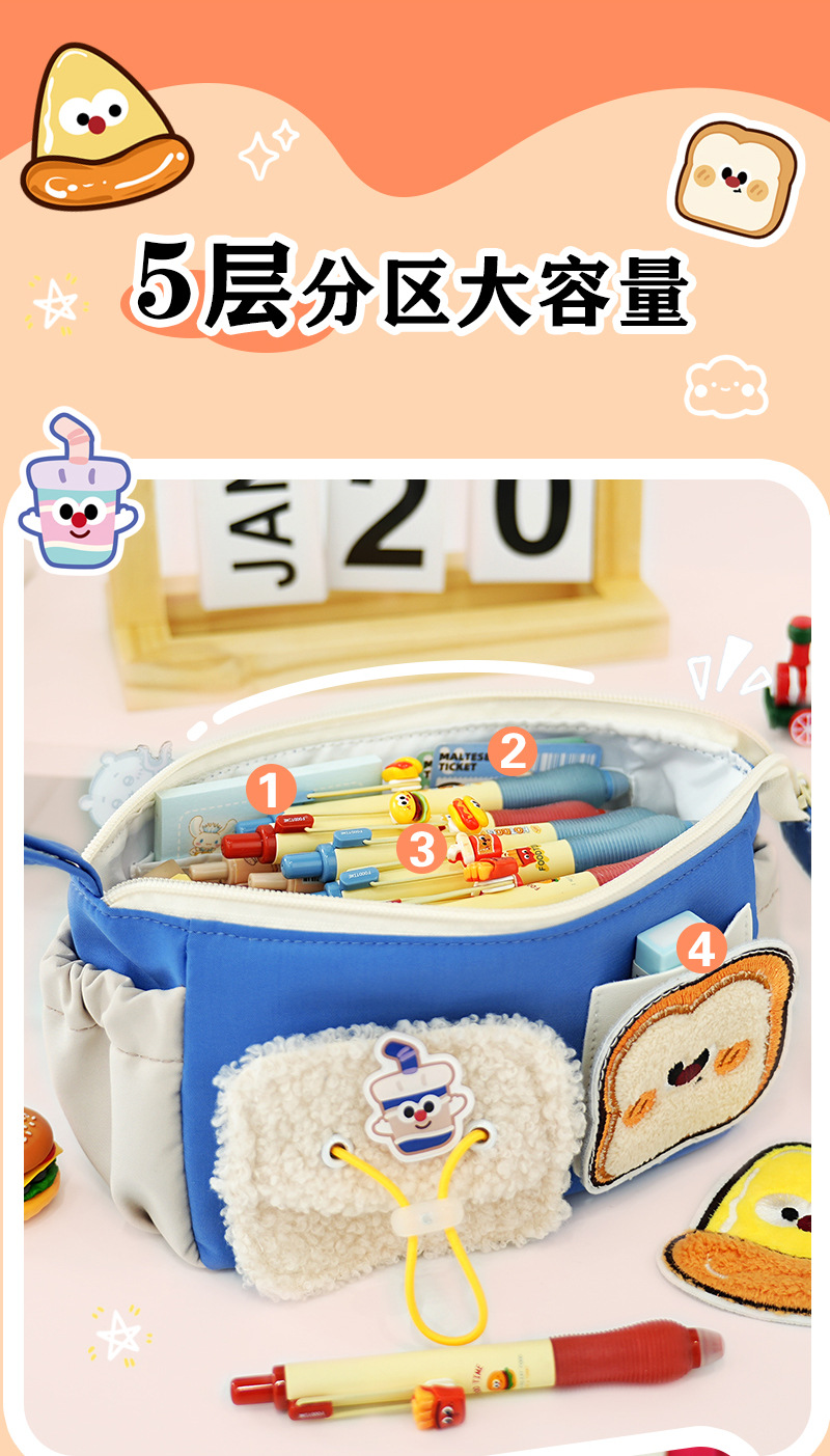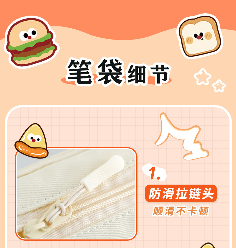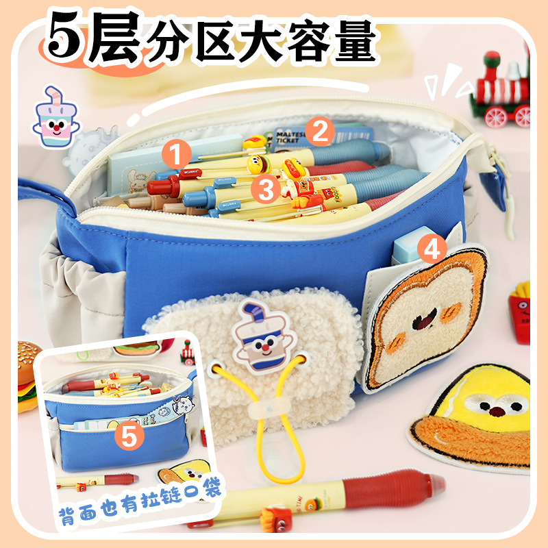 小熊汉堡披萨笔袋可爱大容量高颜值小初高中学生简约铅笔盒文具袋