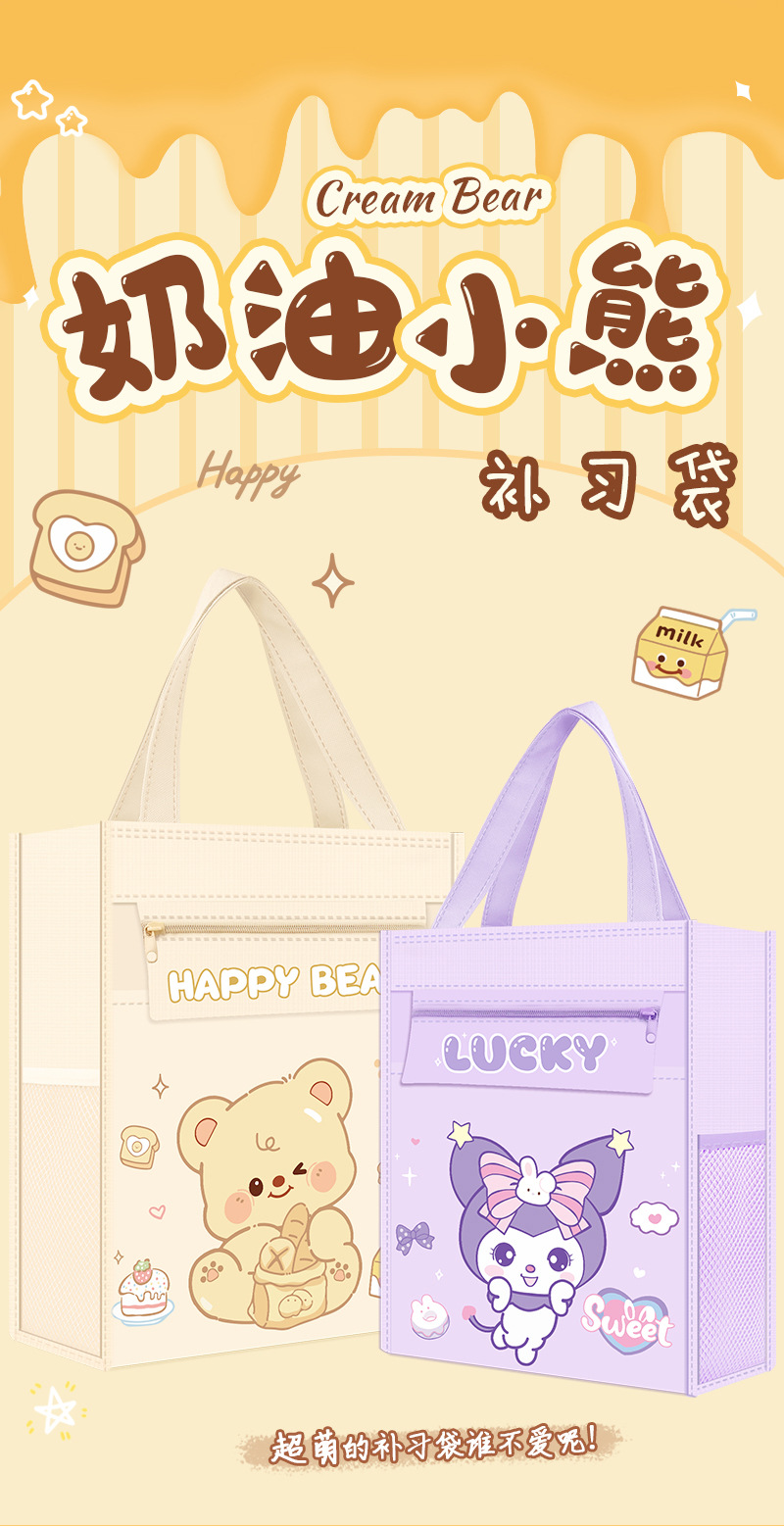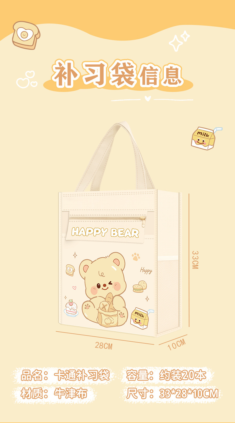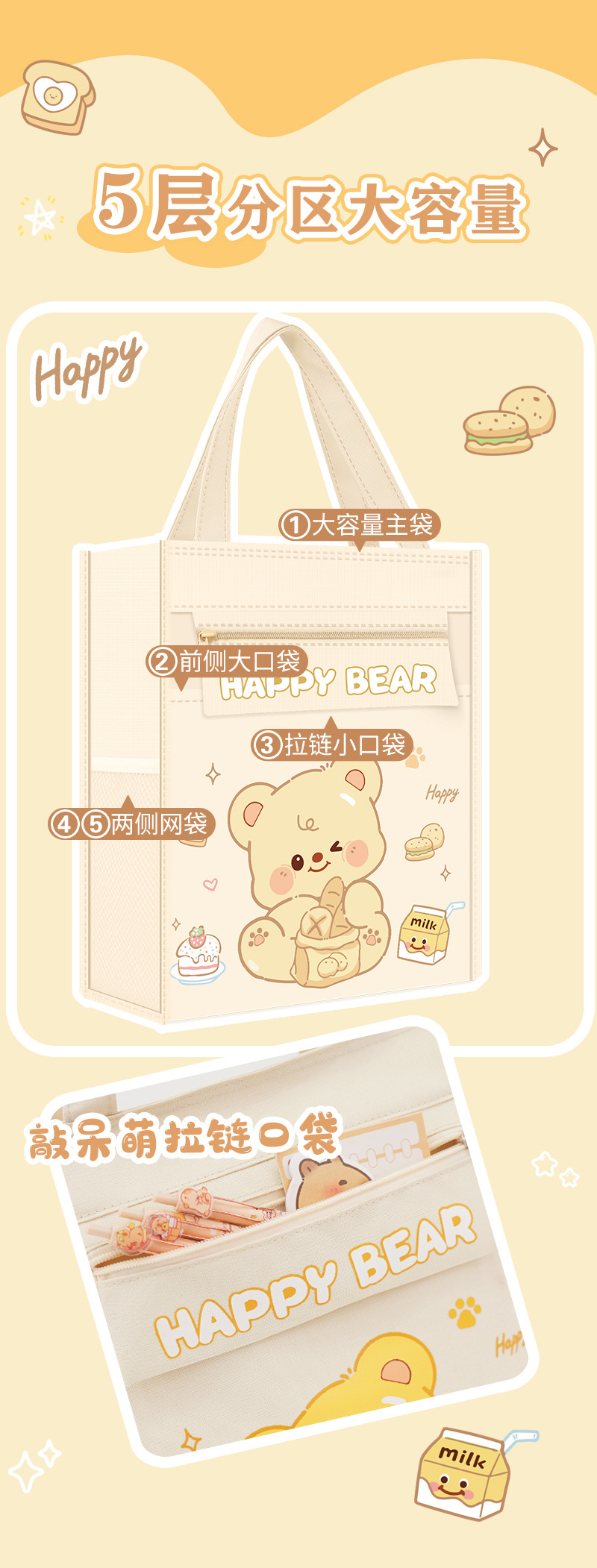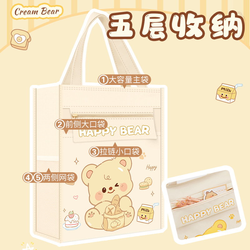 奶油小熊奶呼呼补课袋美术生手提袋女孩补课班5层收纳新款补习袋
