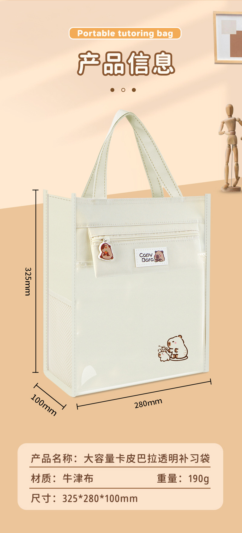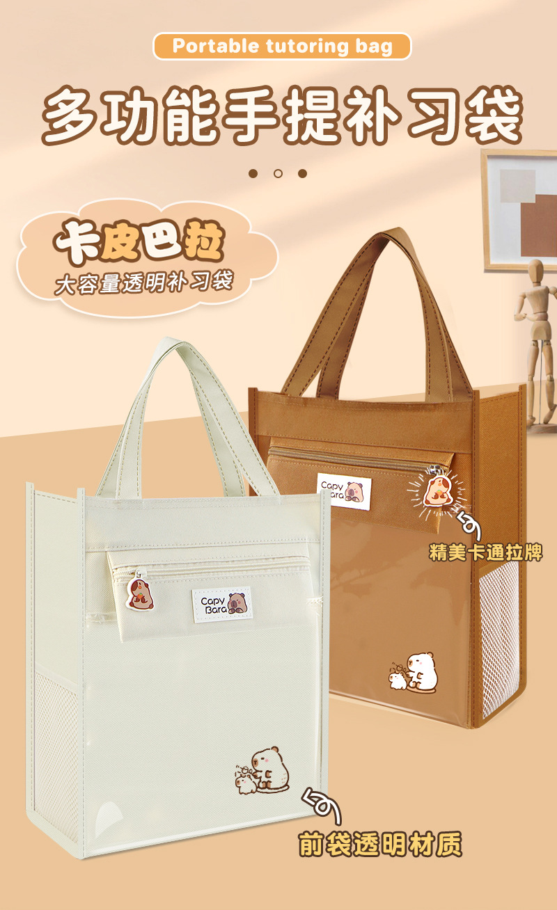 2024卡皮巴拉美术袋可爱单肩帆布袋大容量补课袋手提式学生补习袋
